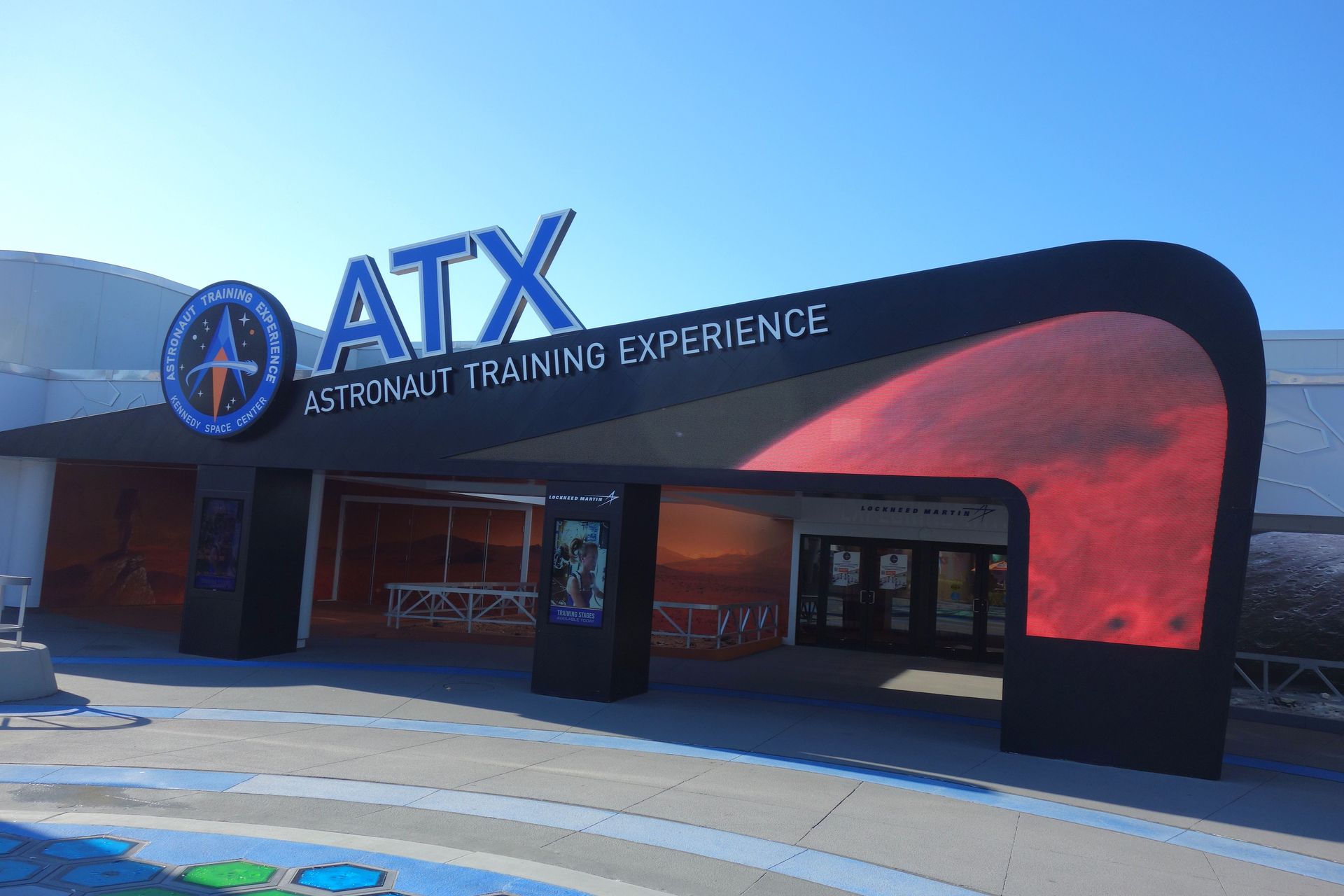 Hier nochmal schön die Atlantis-Halle von hinten, im linken Teil mit dem NASA-Logo ist die Shuttle Launch Experience untergebracht.