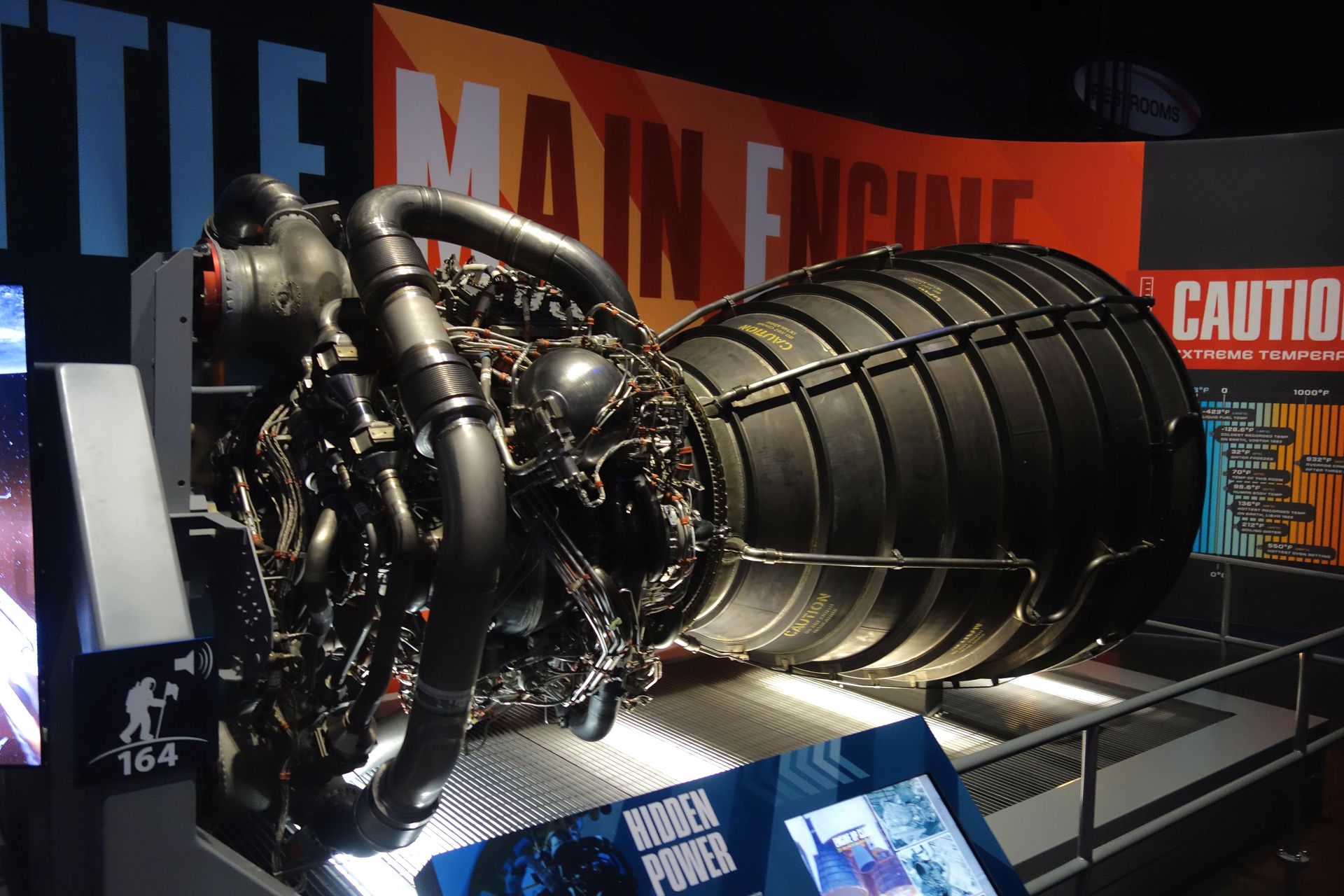 Außerdem kann man sich in Nachbauten von Mercury-, Gemini- und Apollo-Kapseln quetschen, worauf ich angesichts des Regens und des damit einhergehenden Wassers auf den Sitzflächen - und auch aufgrund der Enge - aber dankend verzichtete. Ein früher Prototyp des F1-Triebwerks der Saturn V ist ebenfalls ausgestellt. Bei meinem eigentlichen Ziel stand ich dann dummerweise vor verschlossenen Türen. "Private Event" entschuldigte man sich per Zettel in der Scheibe.