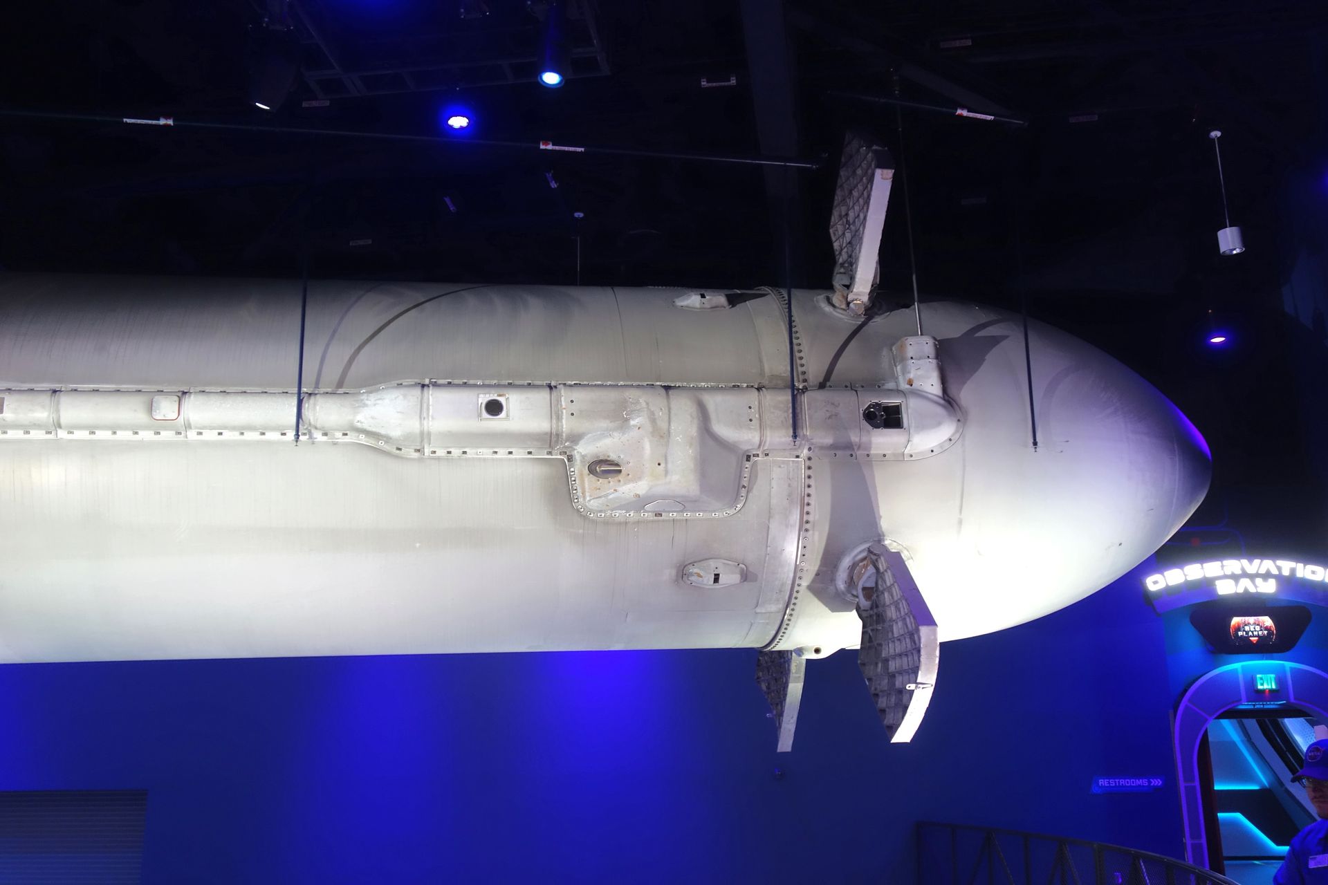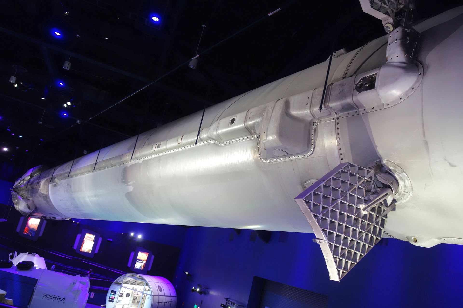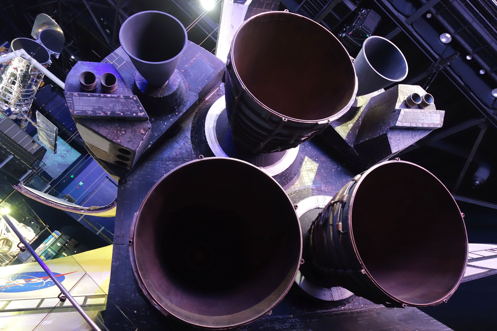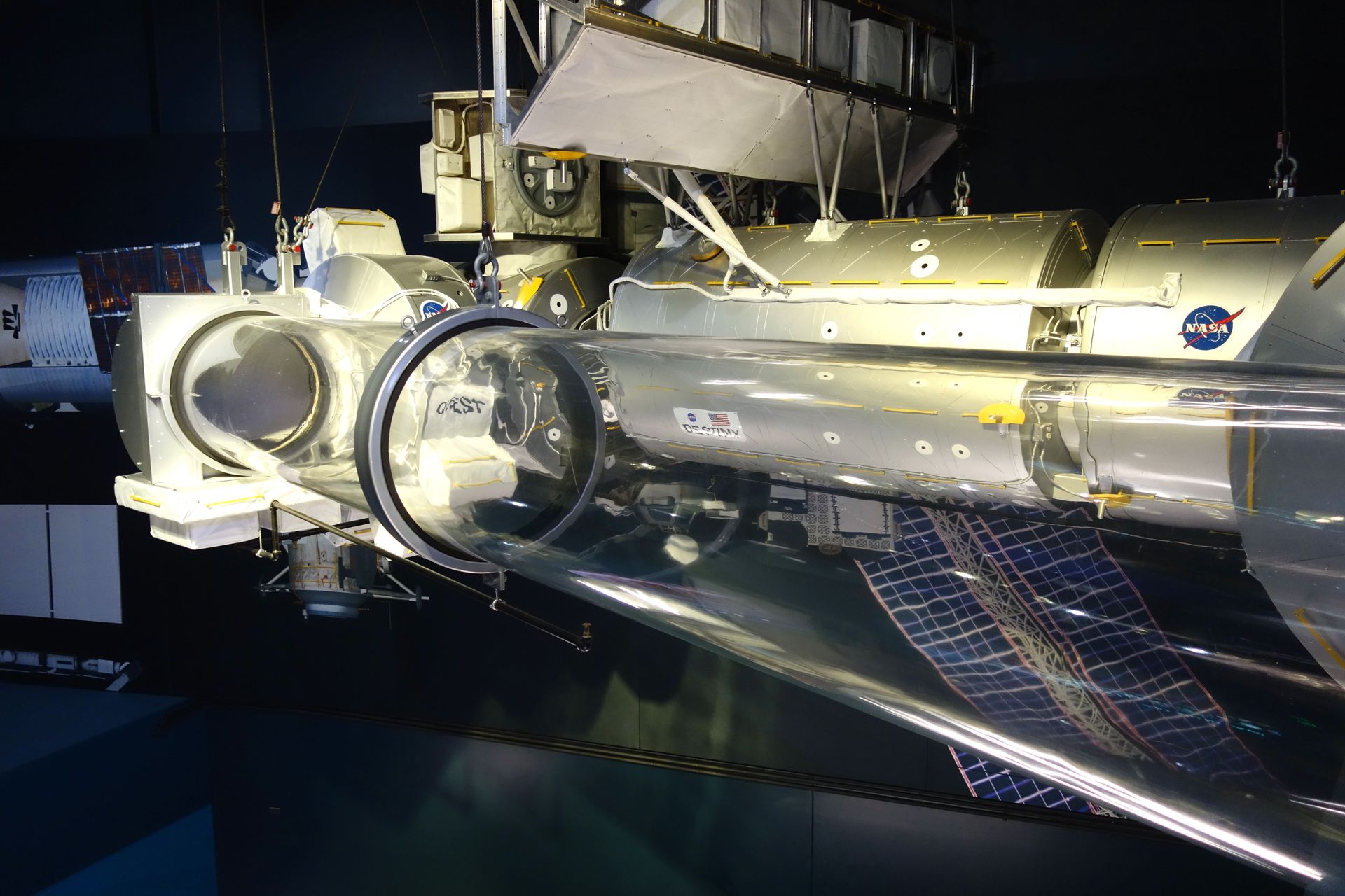 Auch eine lebensgroße Nachbildung des Hubble-Weltraumteleskops hängt an der Decke.