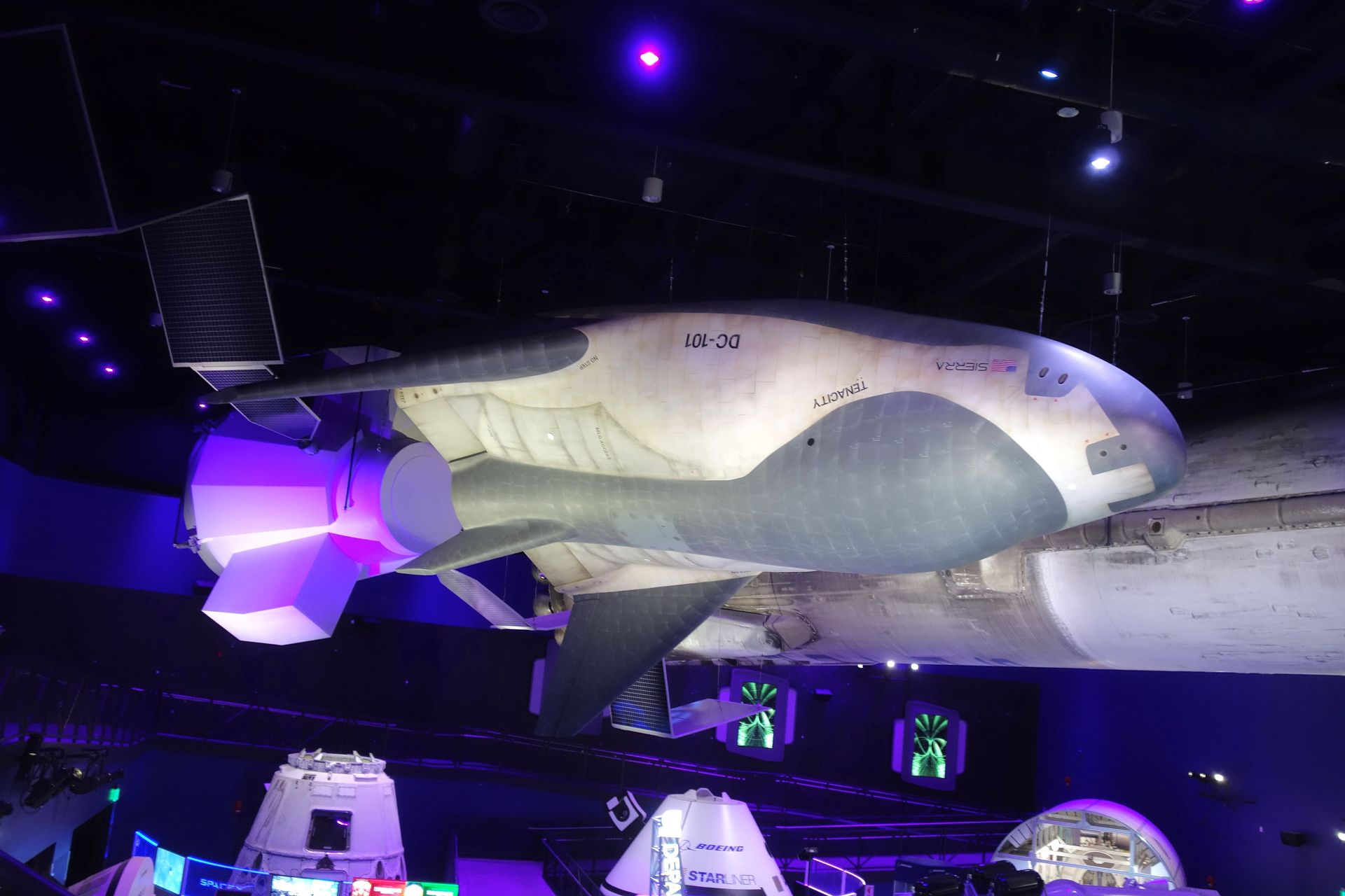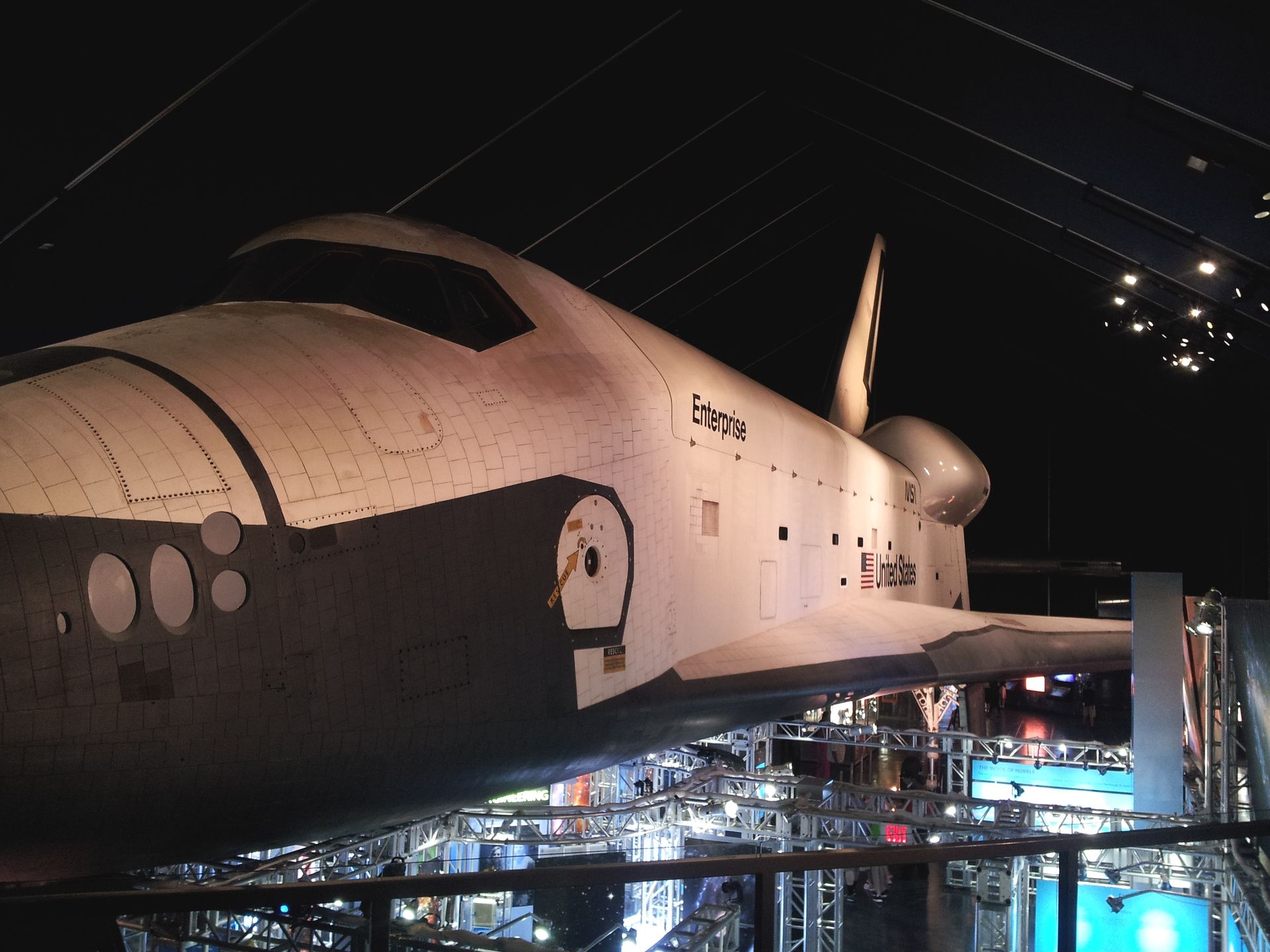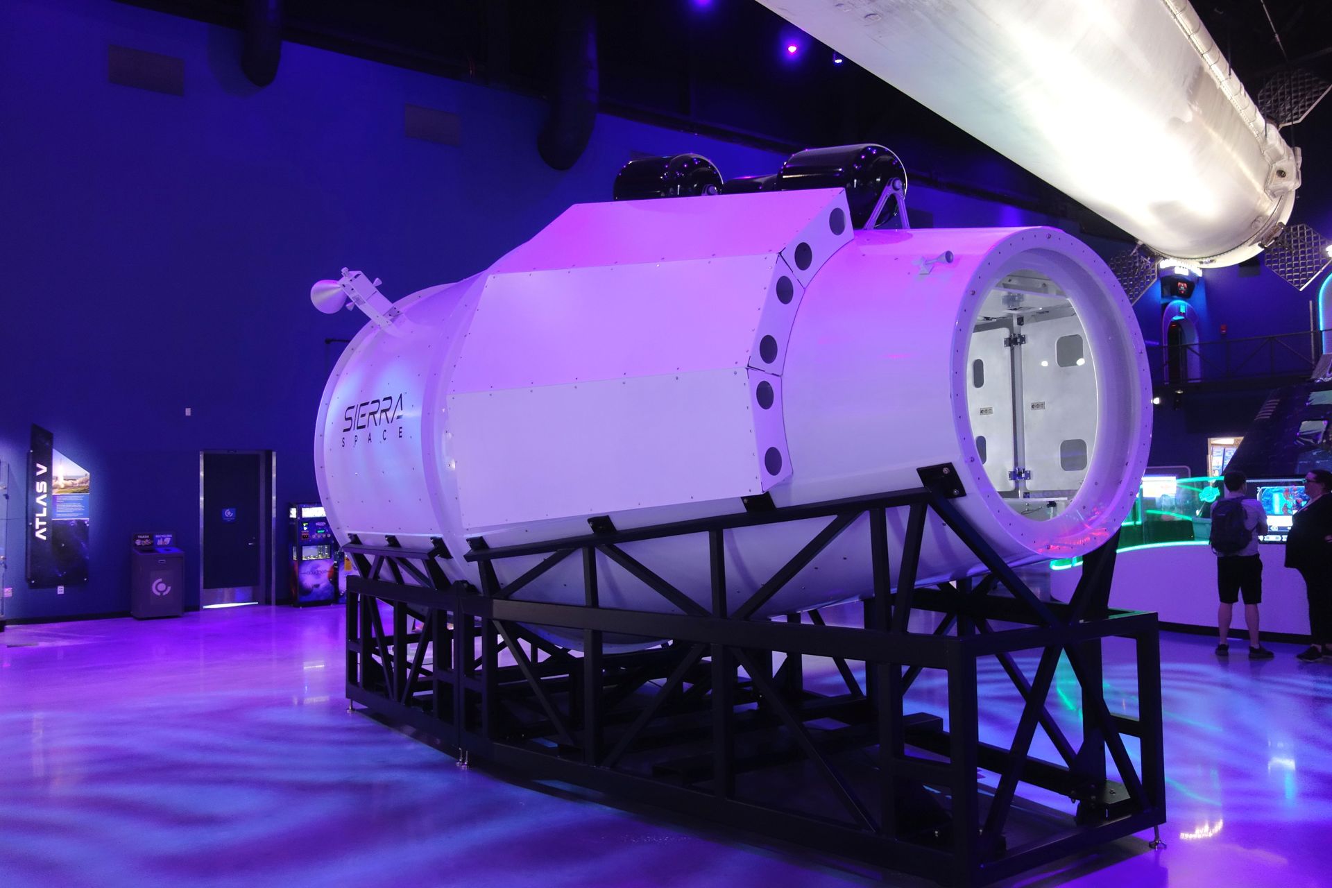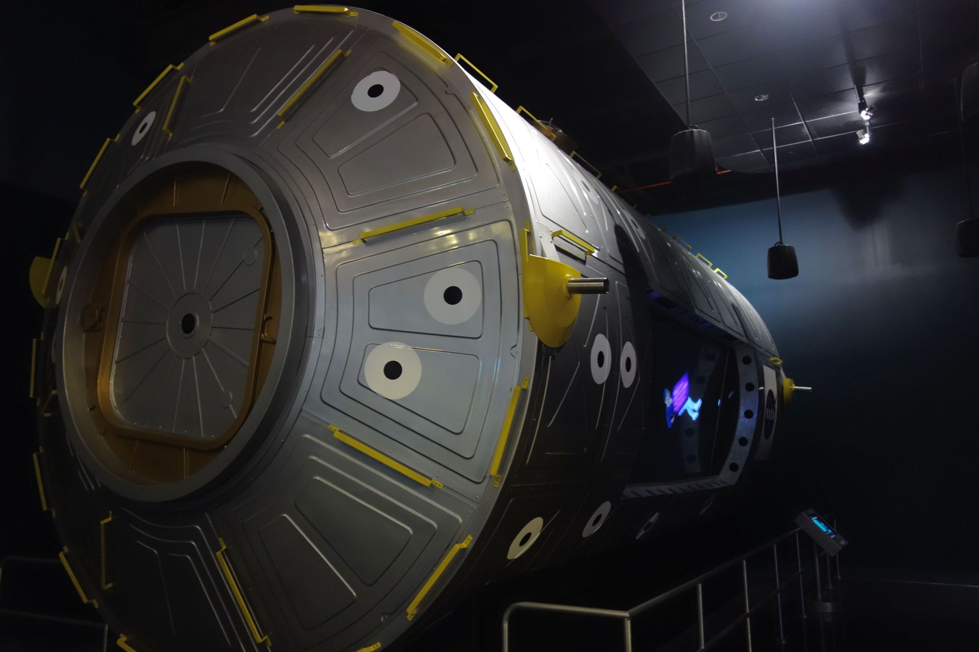 Auch eine lebensgroße Nachbildung des Hubble-Weltraumteleskops hängt an der Decke.