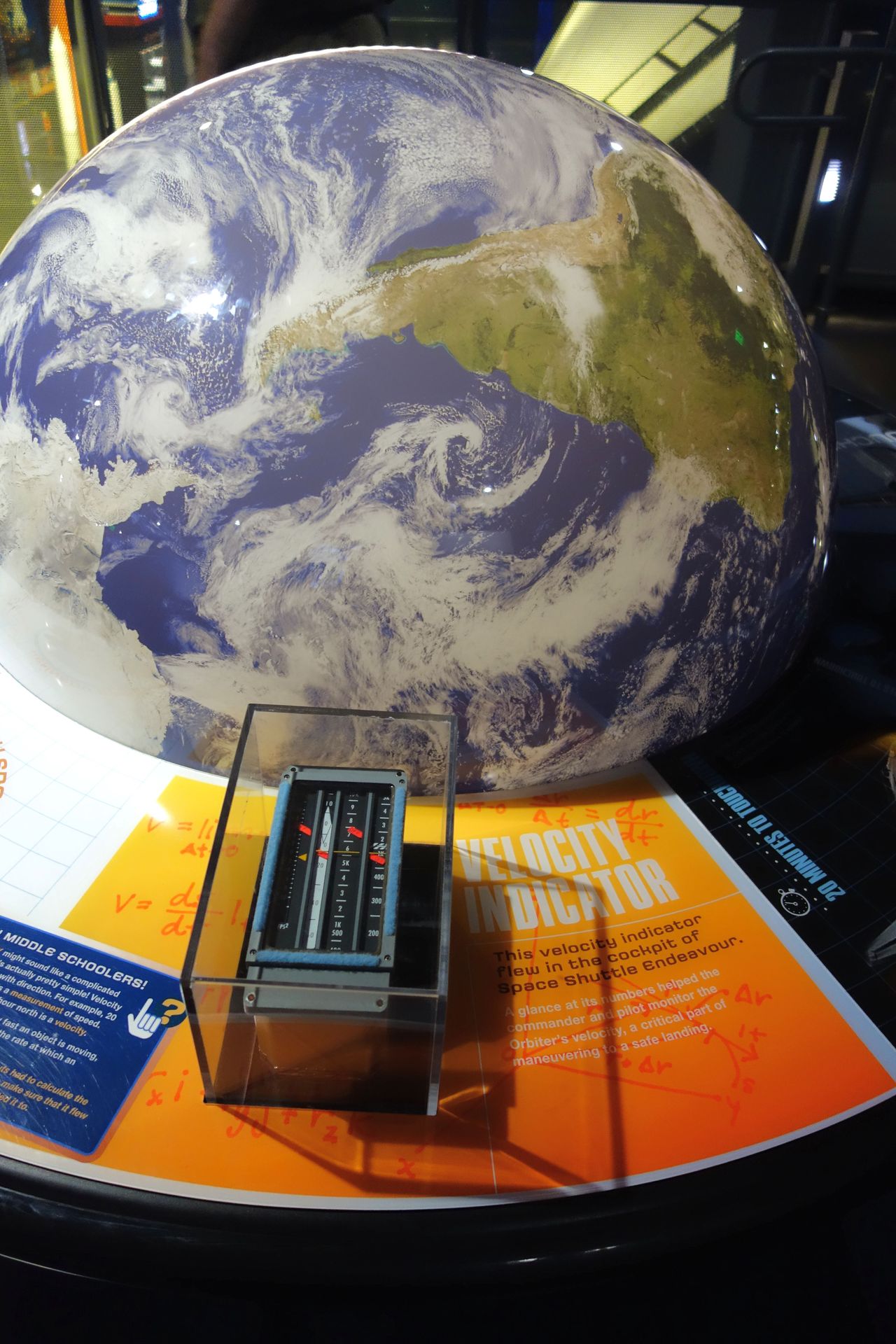 Dann wird es langsam Zeit, sich auf die Landung vorzubereiten. Unerlässlich dabei ist der Blick auf den Geschwindigkeitsanzeiger. Dieser stammt aus der Endeavour.