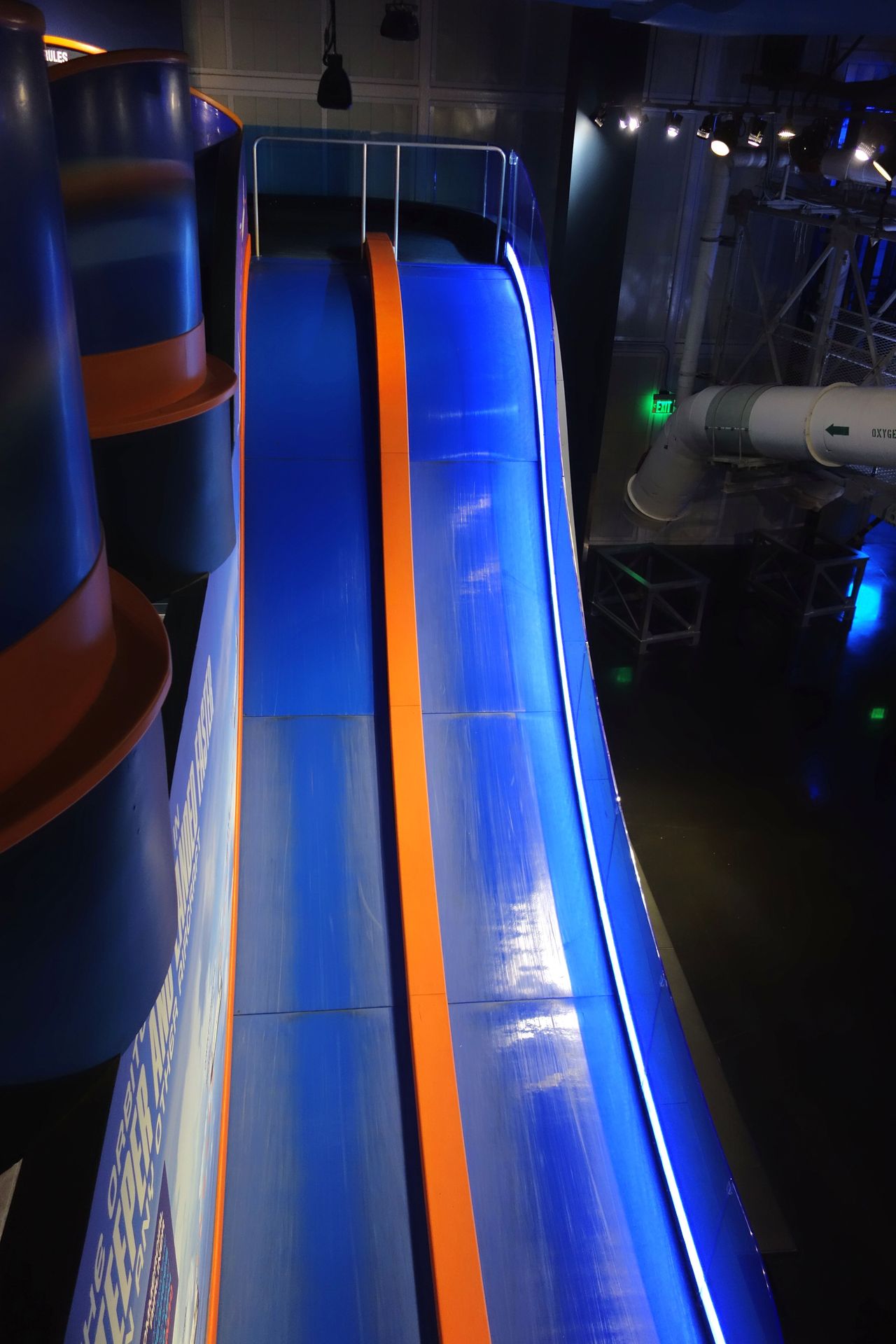 Dieser Parcours führt dann zum 22° steilen Endanflug, der hier als Rutsche ins Erdgeschoss umgesetzt wurde.