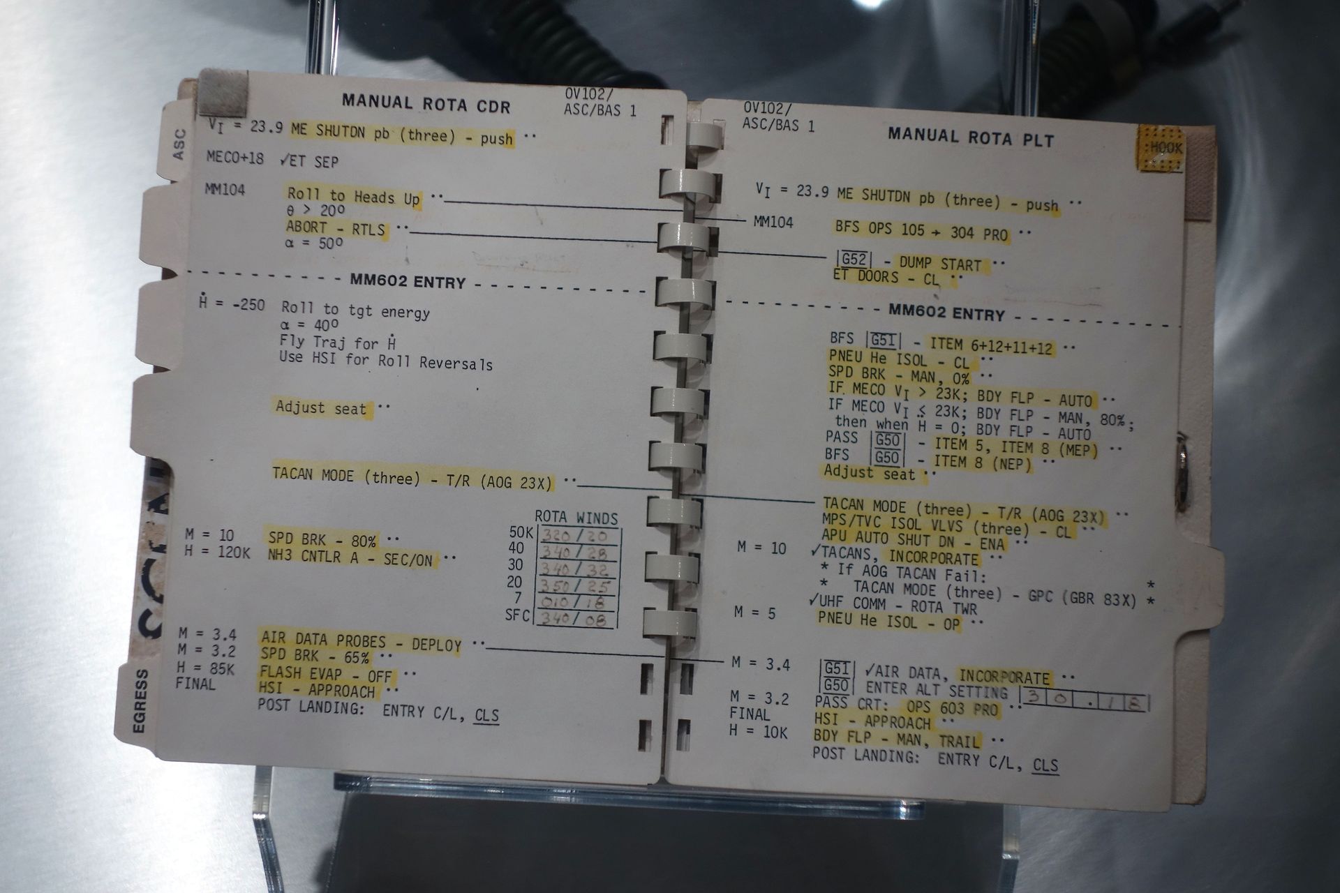 Neben den Anzügen der beiden werden auch Checklisten des Erstflugs ausgestellt. In diesem Fall offenbar jene für den Wiedereintritt.