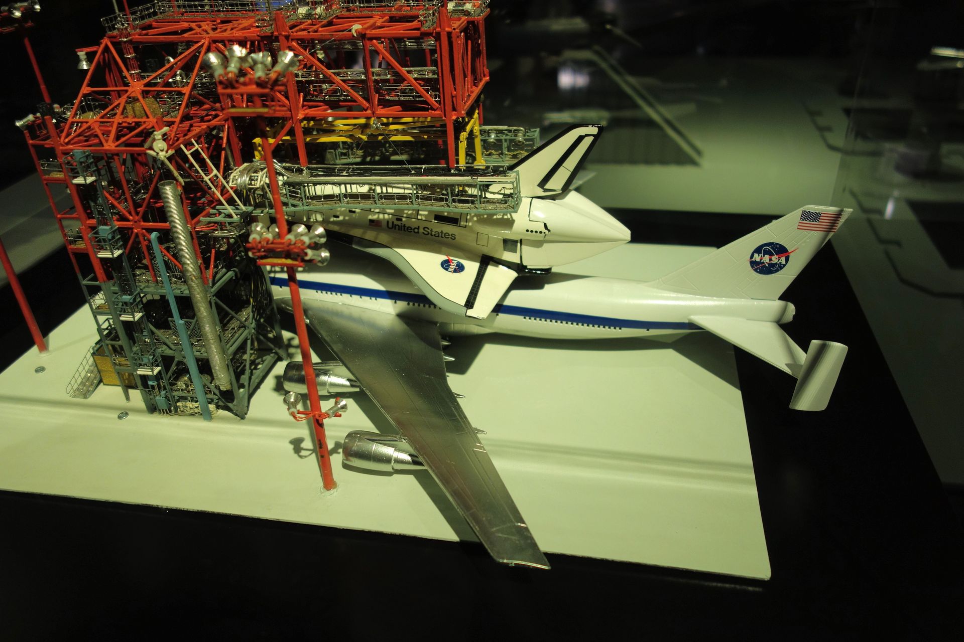 Das Modell des Mate-Demate Device zum Verladen des Shuttles auf dem Carrier Aircraft ist hier deutlich detaillierter als jenes in Houston.