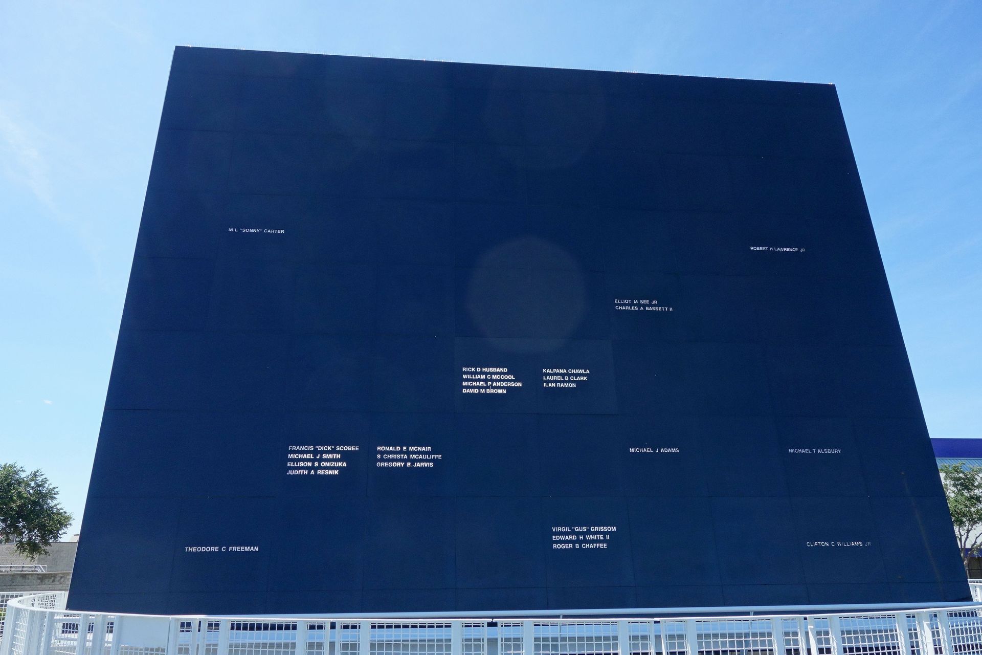 Die weiteren Namen sind Michael J. Adams, der als Astronaut der Air Force mit dem raketengetriebenen Experimentalflugzeug X-15 bei einem Testflug abstürzte, Robert H. Lawrence Jr, der als Ausbildungspilot beim Absturz einer Lockheed F-104 Starfighter ums Leben kam, und M. L. "Sonny" Carter, der quasi auf Dienstreise bei einem zivilen Flugzeugabsturz starb - womit die Dienstreise bekanntlich beendet ist, das wird bei der NASA nicht anders sein als bei deutschen Behörden. 2020 wurde erstmals ein Astronaut eines privaten Raumfahrtunternehmens hinzugefügt, Michael T. Alsbury starb 2014 beim Absturz des für Virgin Galactic entwickelten SpaceShip Two "VSS Enterprise" auf einem Testflug.