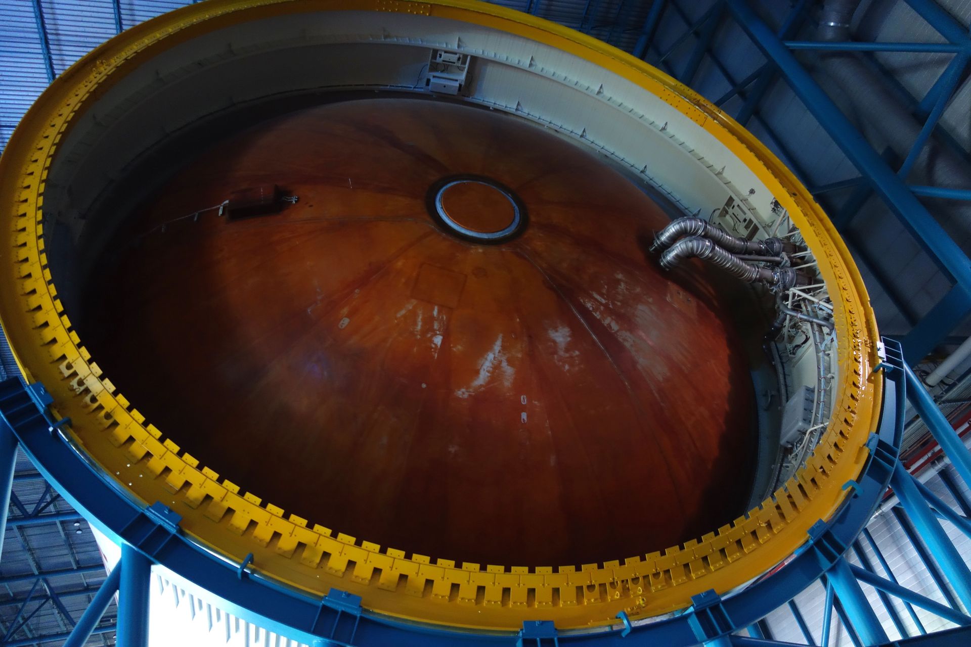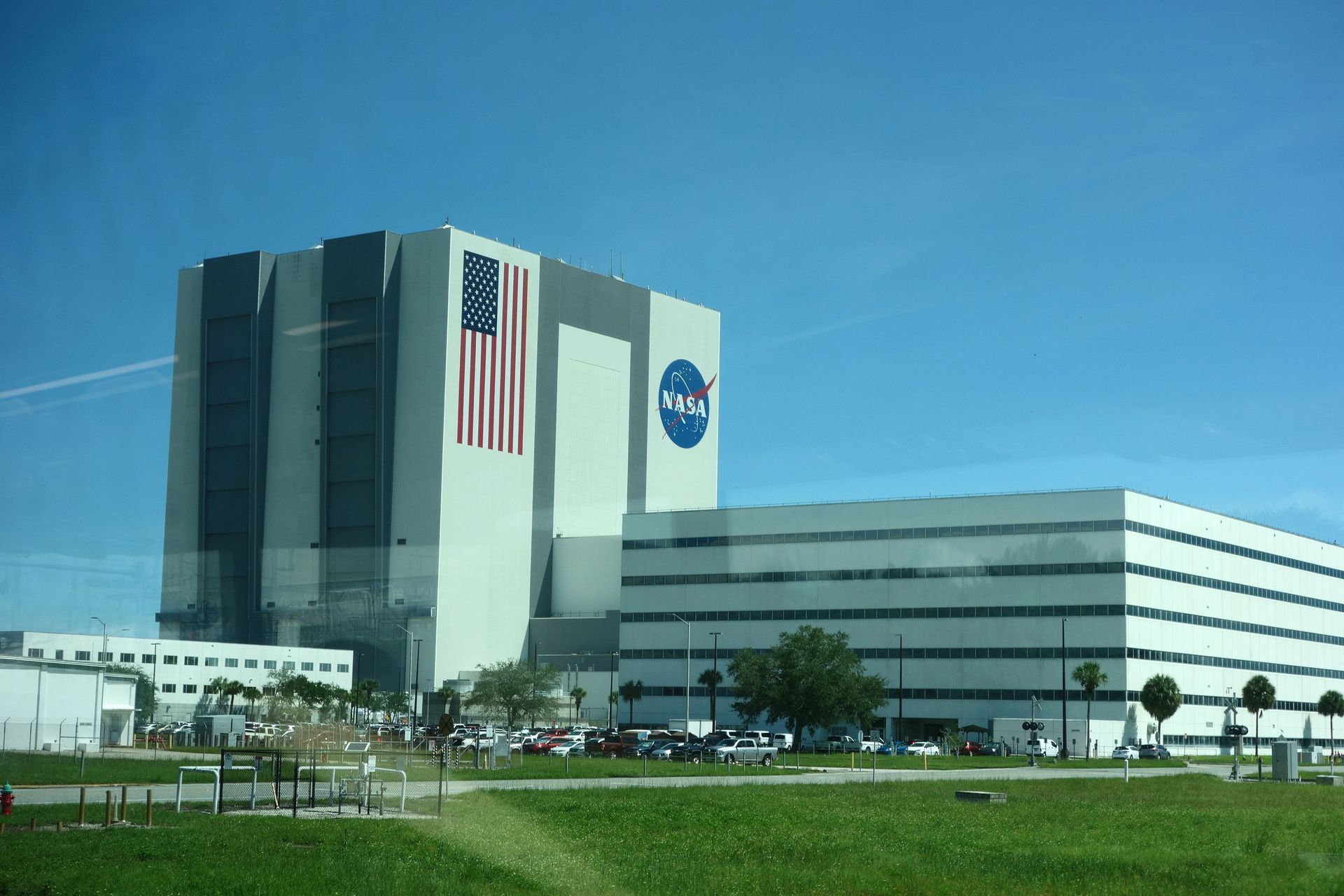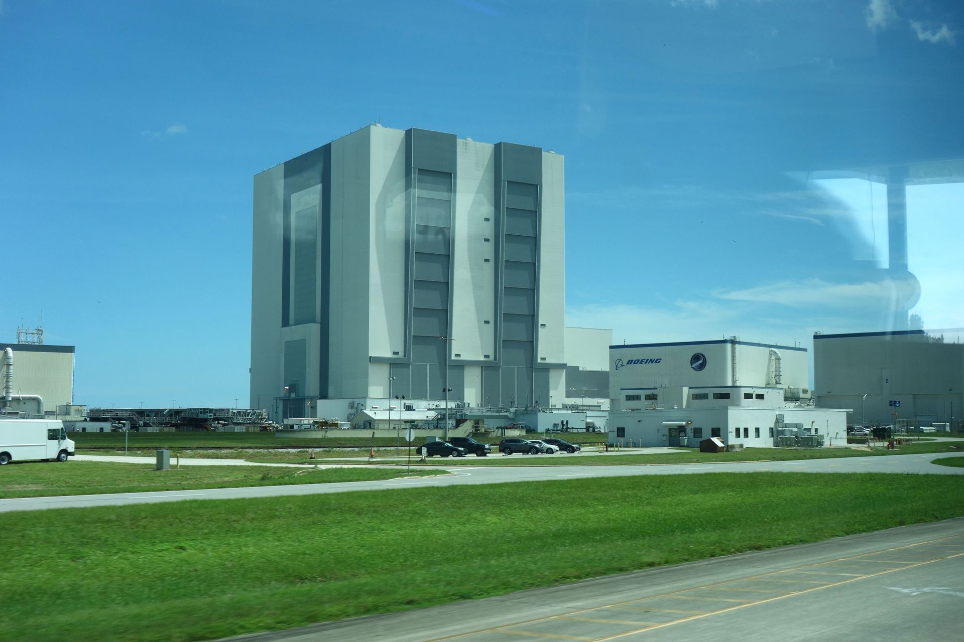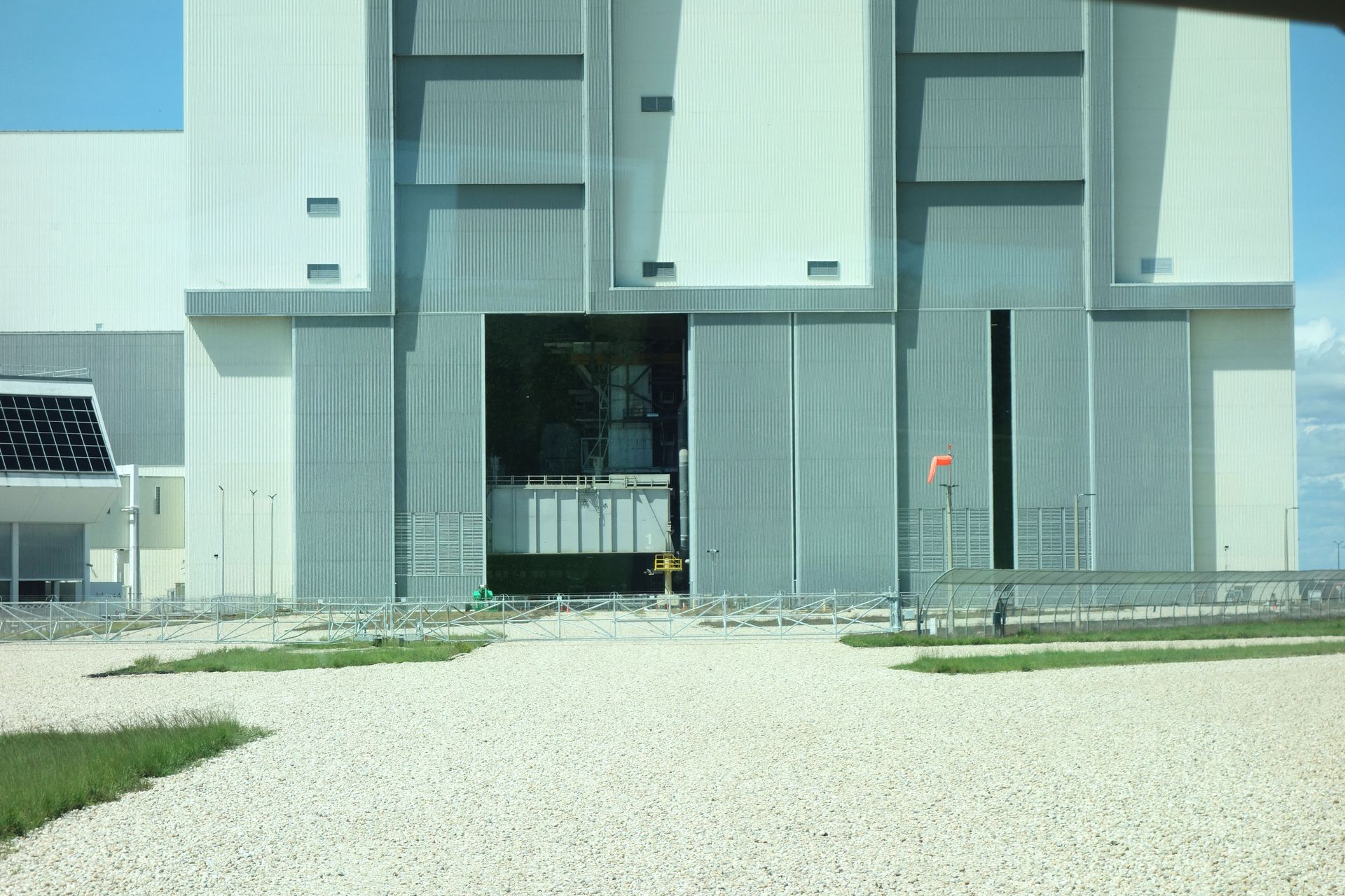 Wir hatten Glück, das Tor zu High Bay 1 war zum Teil offen. Genau dort wurde (unter anderem) Apollo 11 zusammengesetzt!