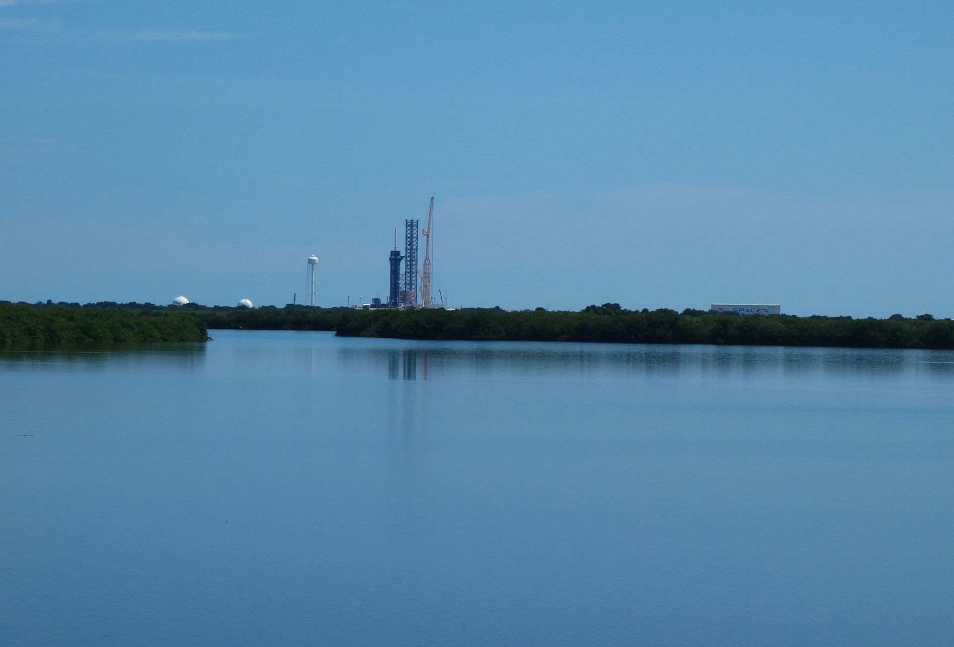 Rechts Launch Complex 39A, welcher seit 2014 für 20 Jahre exklusiv an SpaceX vermietet ist.