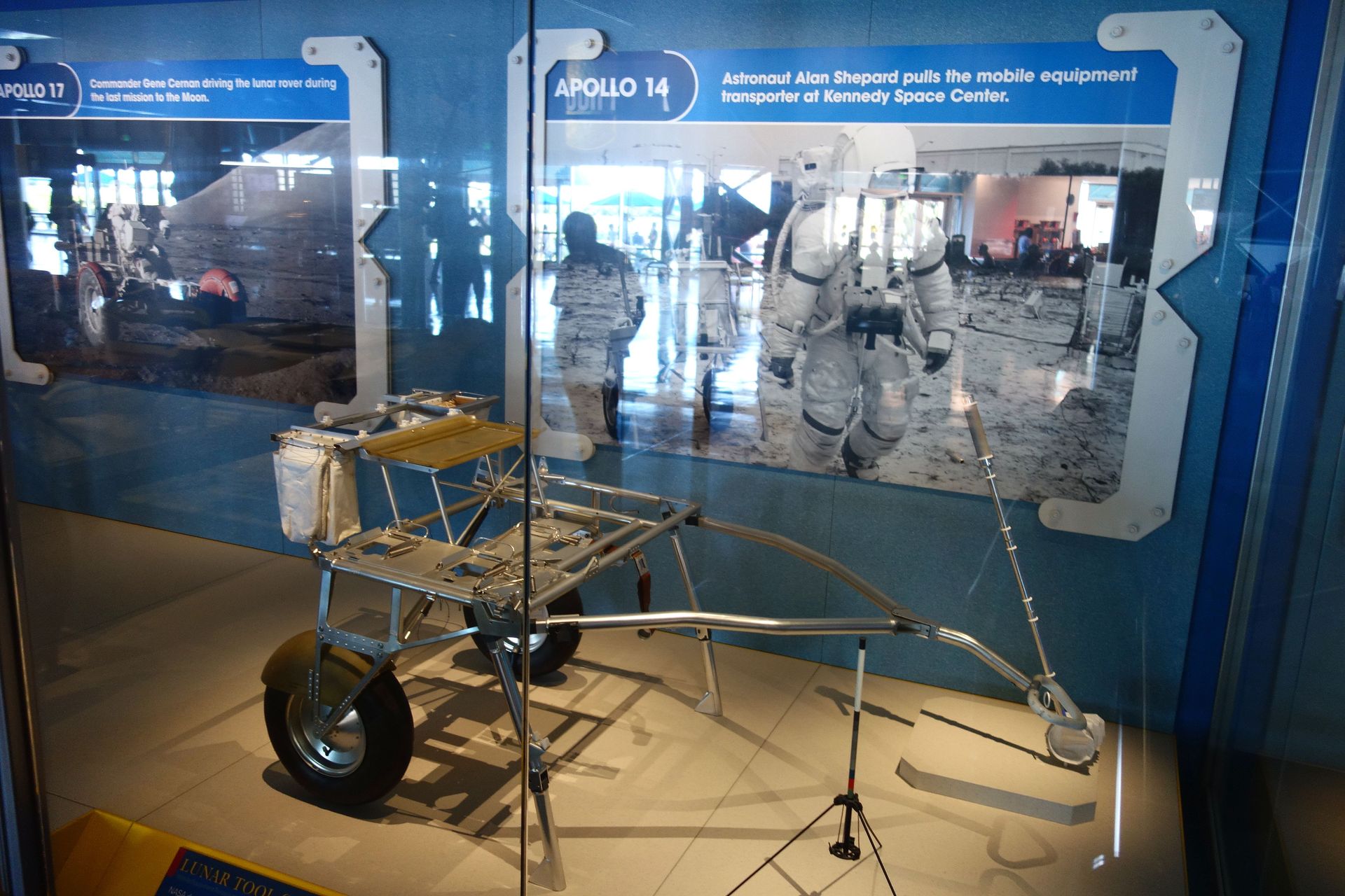 Bevor das Mondauto fertig war, musste man sich bei Apollo 14 mit einer Handkarre behelfen, dem Mobile Equipment Transporter.