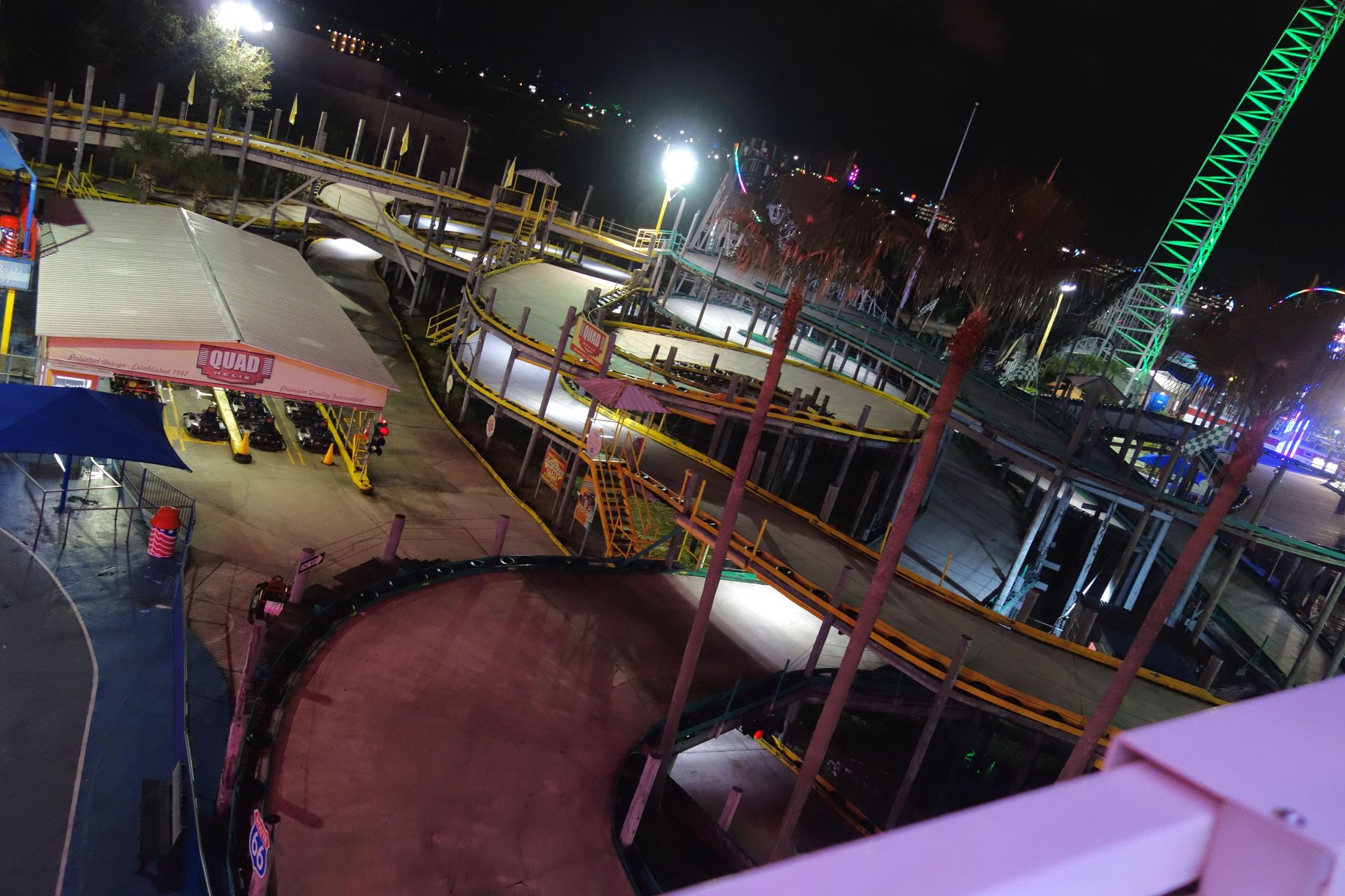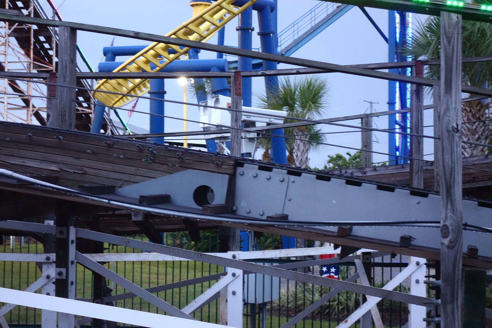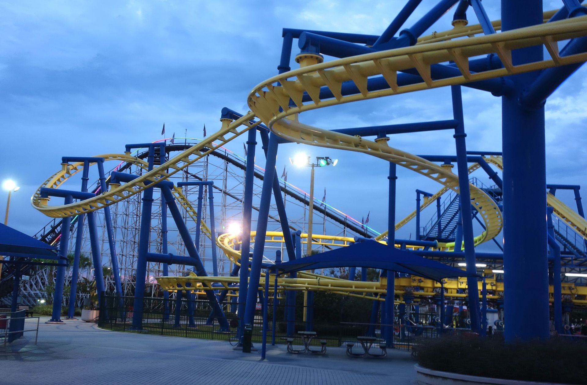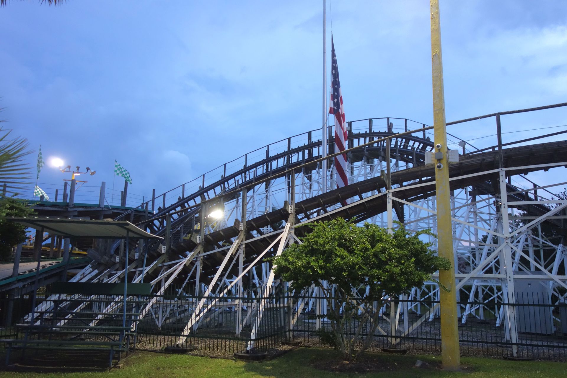 Bei diesem kurzen Stück auf White Lightning, war ein Unterschied in den Fahreigenschaften nicht wirklich festzustellen. Ehe man da hätte etwas merken können, war man ja schon wieder auf der alten Schiene. Mit den drei Achterbahnen hatte ich schon Fahrten im Wert von 31 Dollar absolviert (Einzelfahrten hätten 7 Dollar für Sea Serpent und je 12 Dollar für Freedom Flyer und White Lightning gekostet). Auch wenn die Fun Spots in der Regel bis Mitternacht geöffnet sind, musste ich den Besuch des zweiten Parks bei einsetzender Dunkelheit mangels Mitfahrern endgültig absagen und auf den übernächsten Tag verschieben.