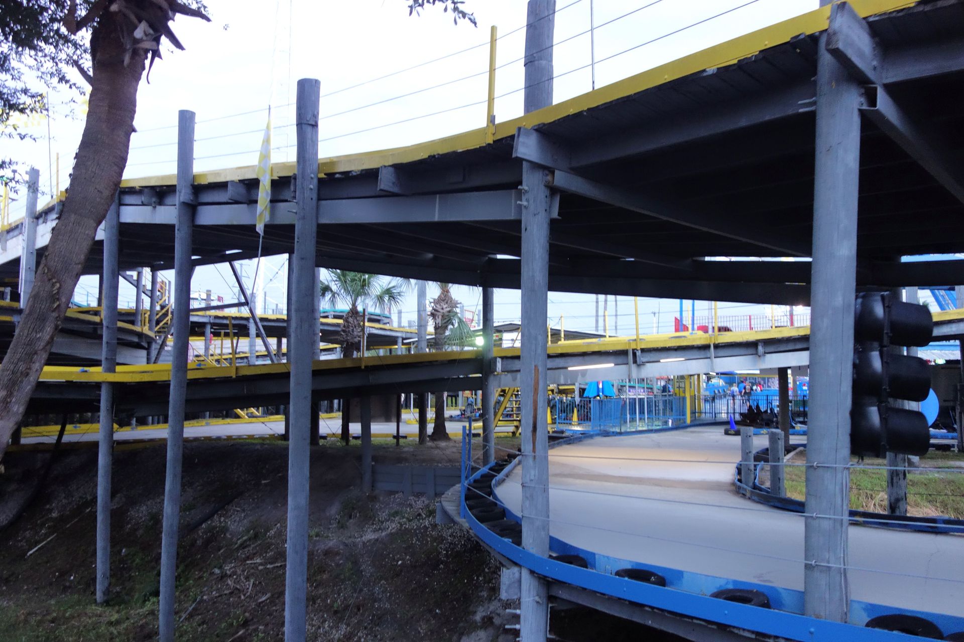 2013 wurde die Anlage durch ein neues Modell ersetzt und zog nach Orlando um. Auf den kleinen Lifthill folgt ein simples Oval mit drei kleiner werdenden Hügelchen.