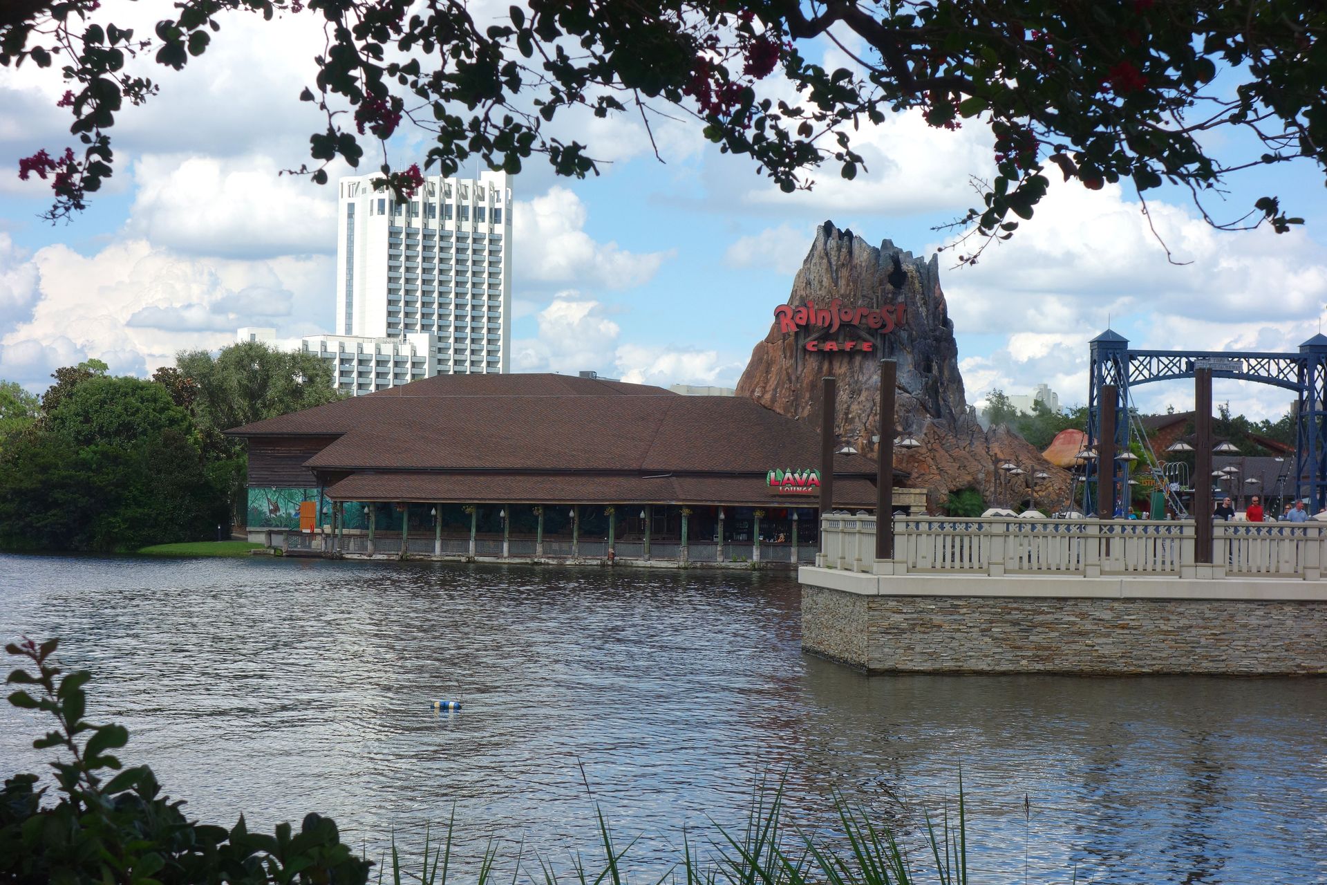 Den schmalen Ausläufer des Sees überspannt eine Brücke zum Rainforest Cafe, über welche ich etwas abkürzte.