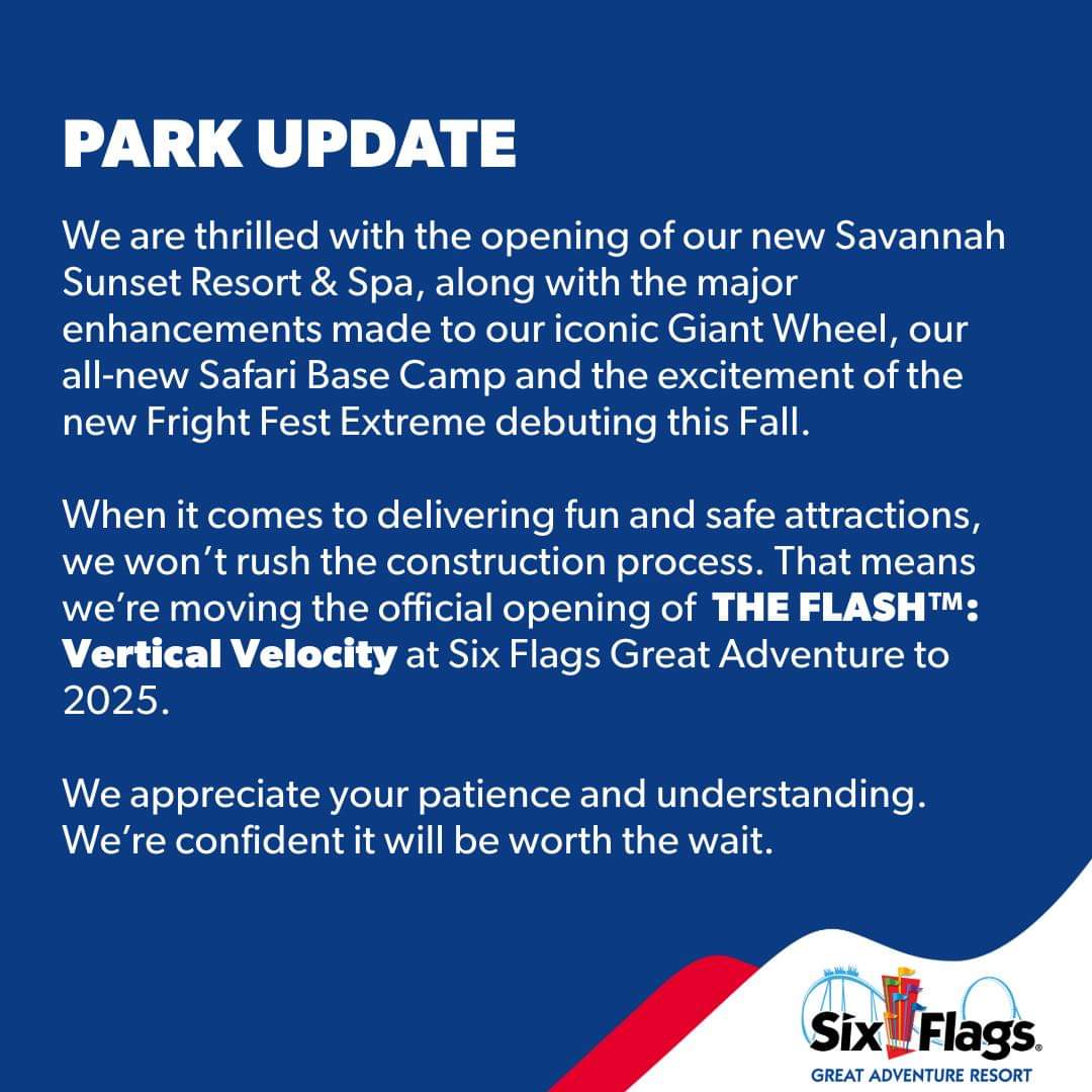 Six Flags Great Adventure bekommt 2024 einen Vekoma Super Boomerang mit dem Namen The Flash: Vertical Velocity.