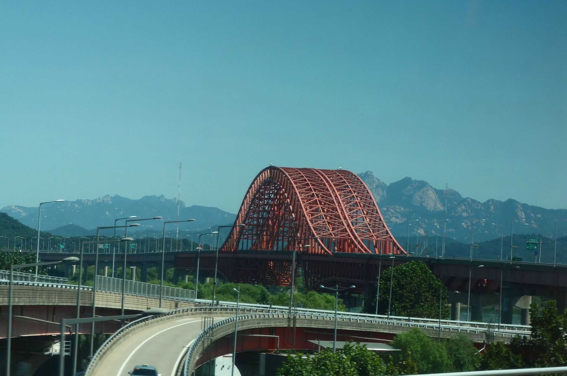 Vorbei am Flughafen Gimpo querten wir über die ebenfalls 2000 vollendete Banghwa Bridge auf 2.559 Metern den Han River.