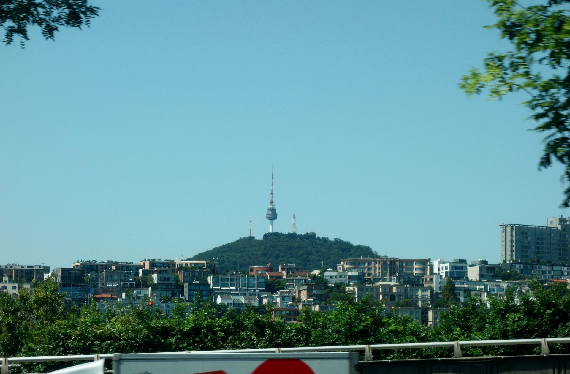 Nachdem wir die Koffer ab- und die letzten noch fehlenden Teilnehmer eingeladen hatten, ging es durch den 265 Meter hohen Berg Namsan gen Süden.