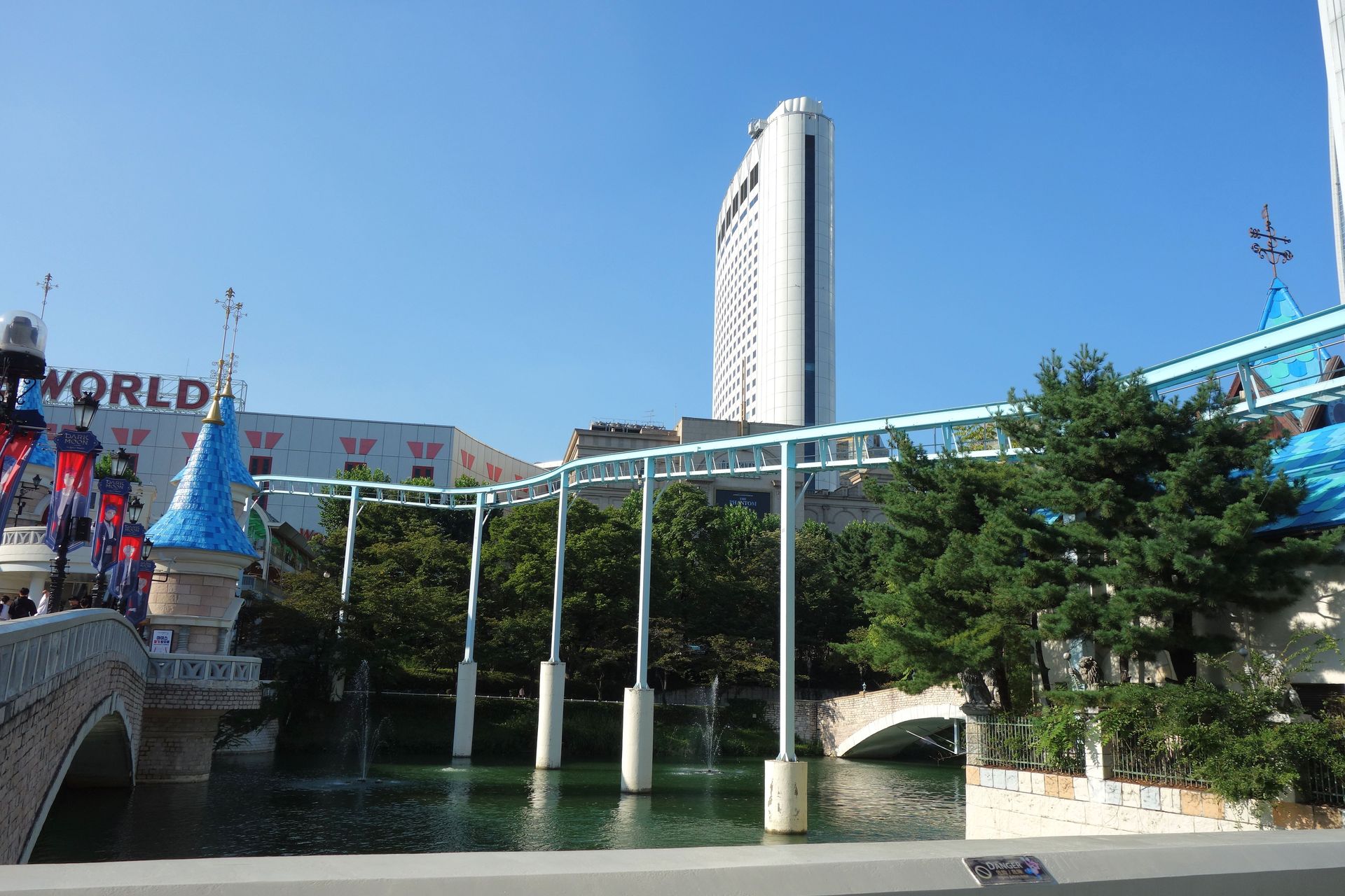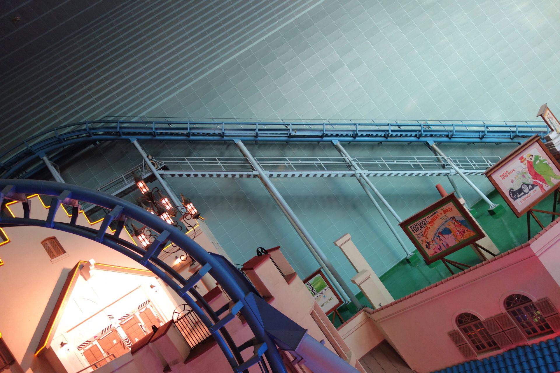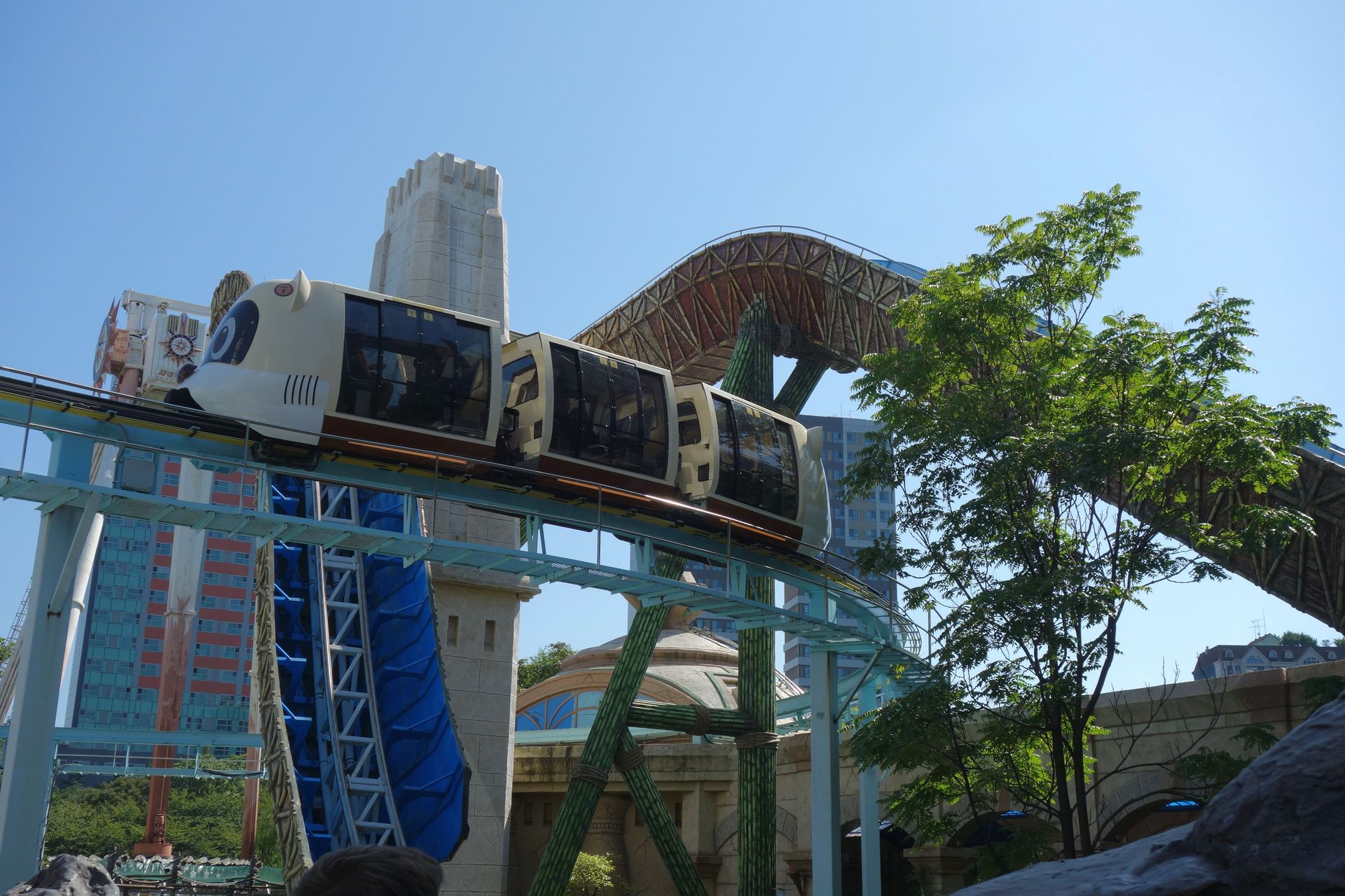 Noch immer geflasht suchten wir die inzwischen wieder fahrende Monorail auf, die nach Schließung des Raftings die einzige Attraktion auf 3F ist.