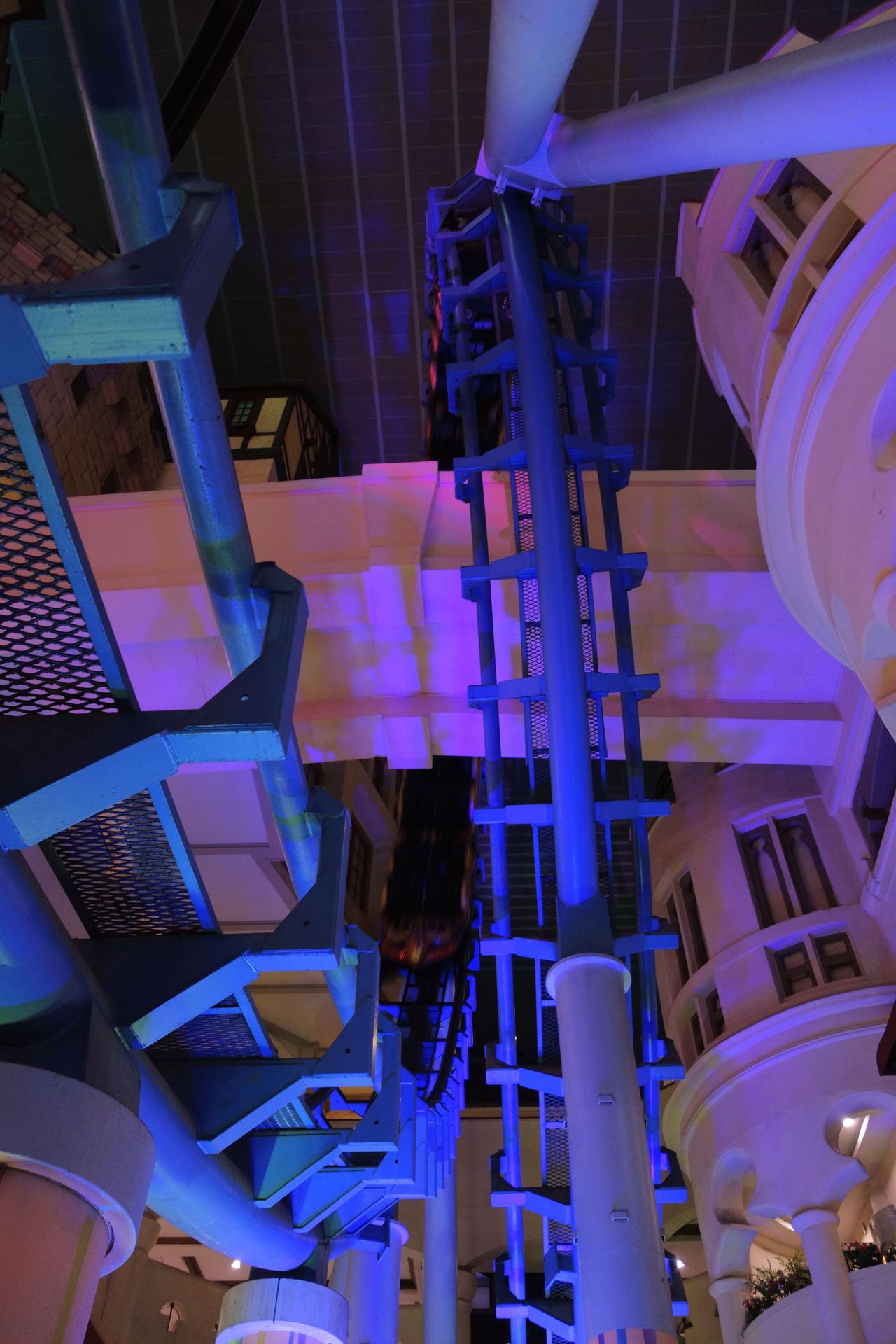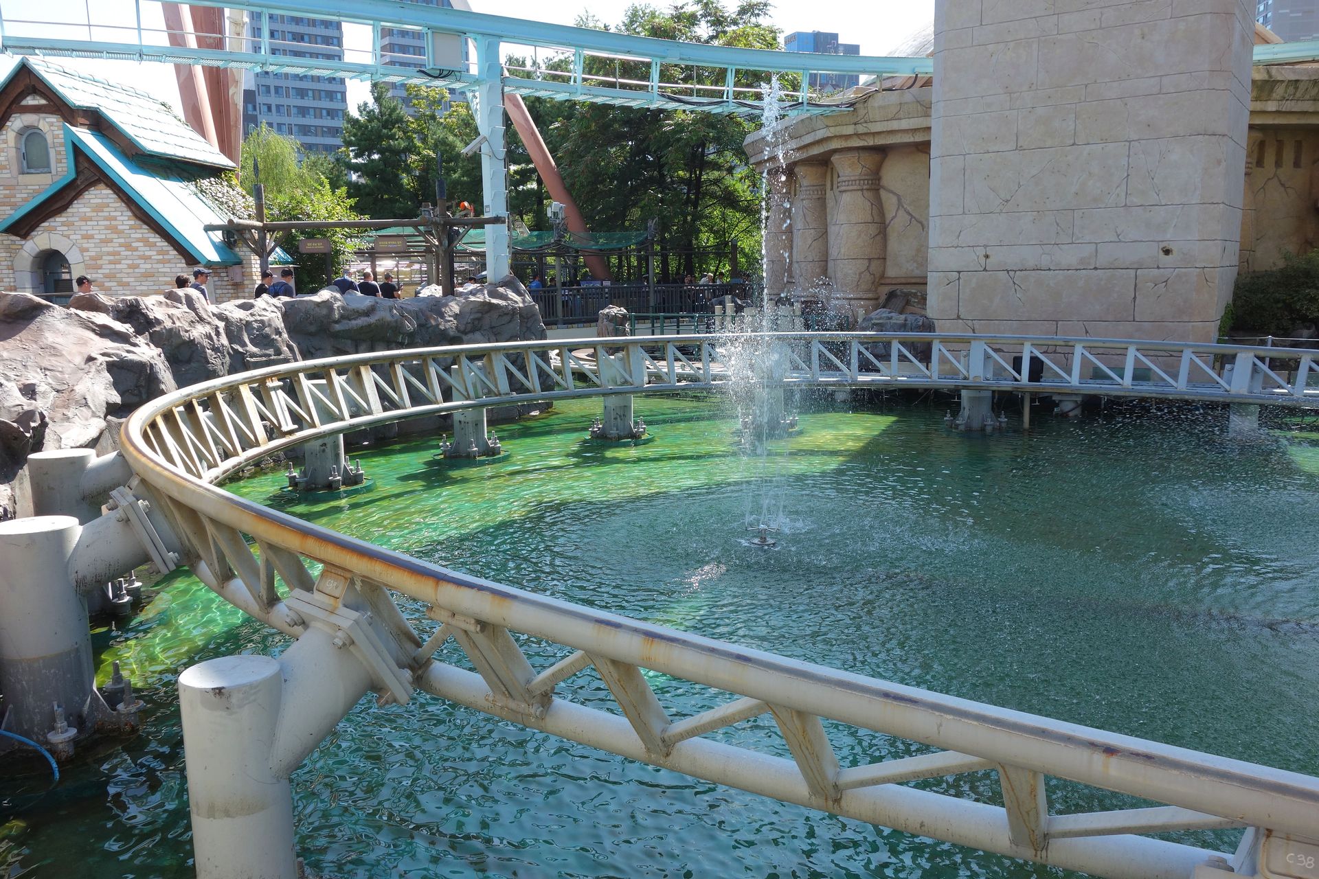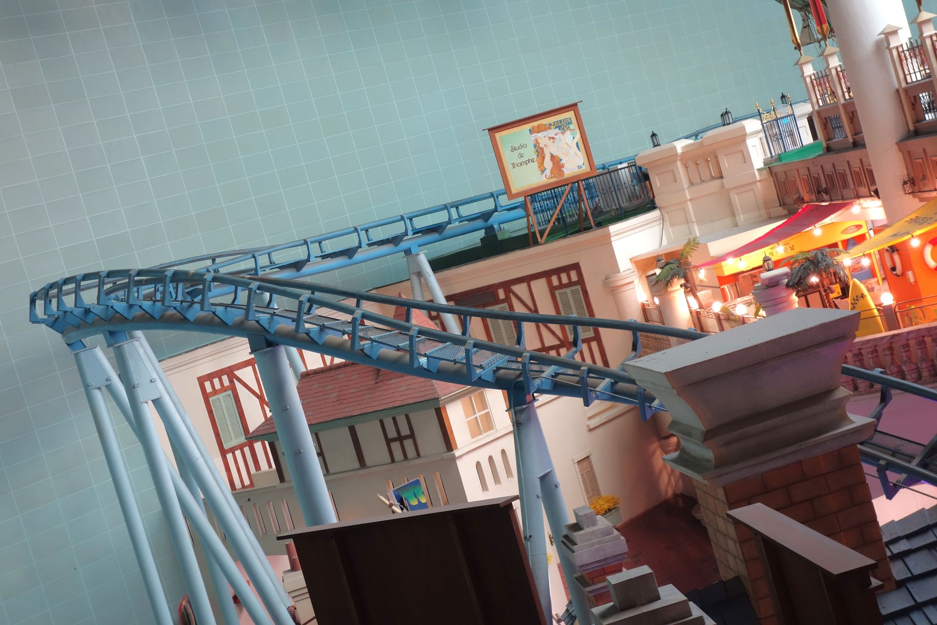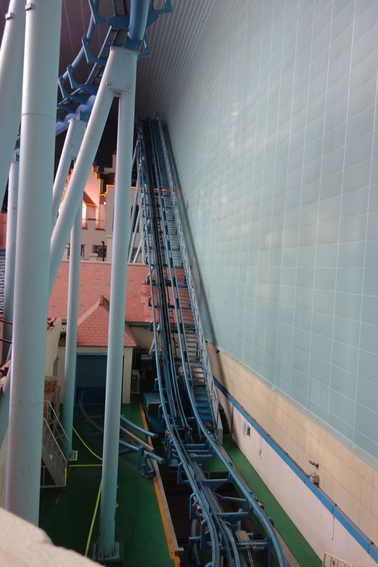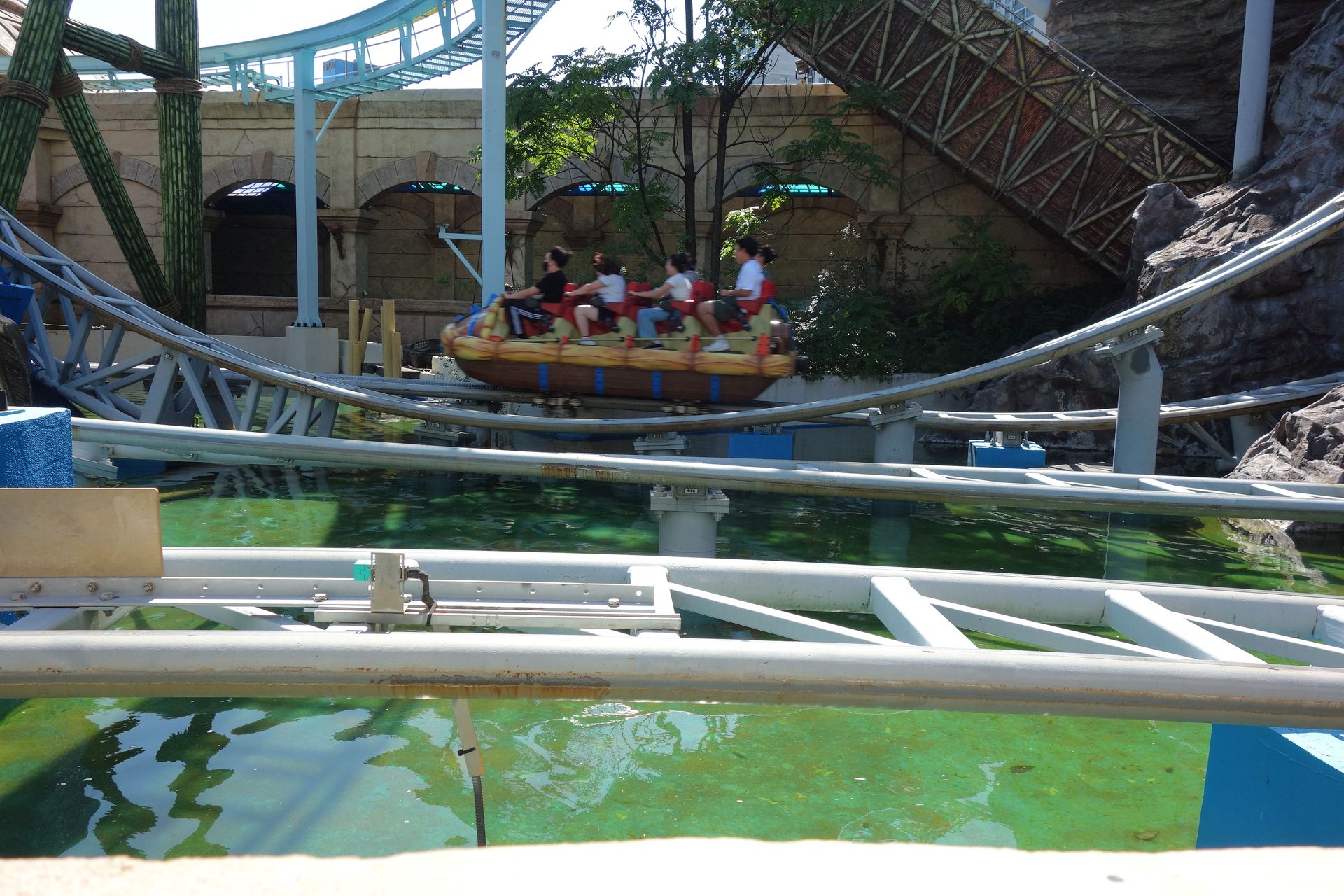 Intamin mit 6er-Booten, der sich komplett Indoor aufgrund des benötigten Gefälles bis hinab auf 2F schlängelte. Leider blieb uns die Fahrt mit dieser Rarität verwehrt, denn die Anlage hatte wenige Tage vor unserem Besuch ihren Betrieb eingestellt.