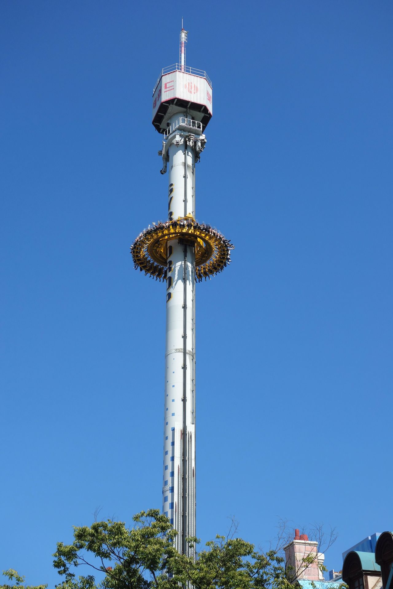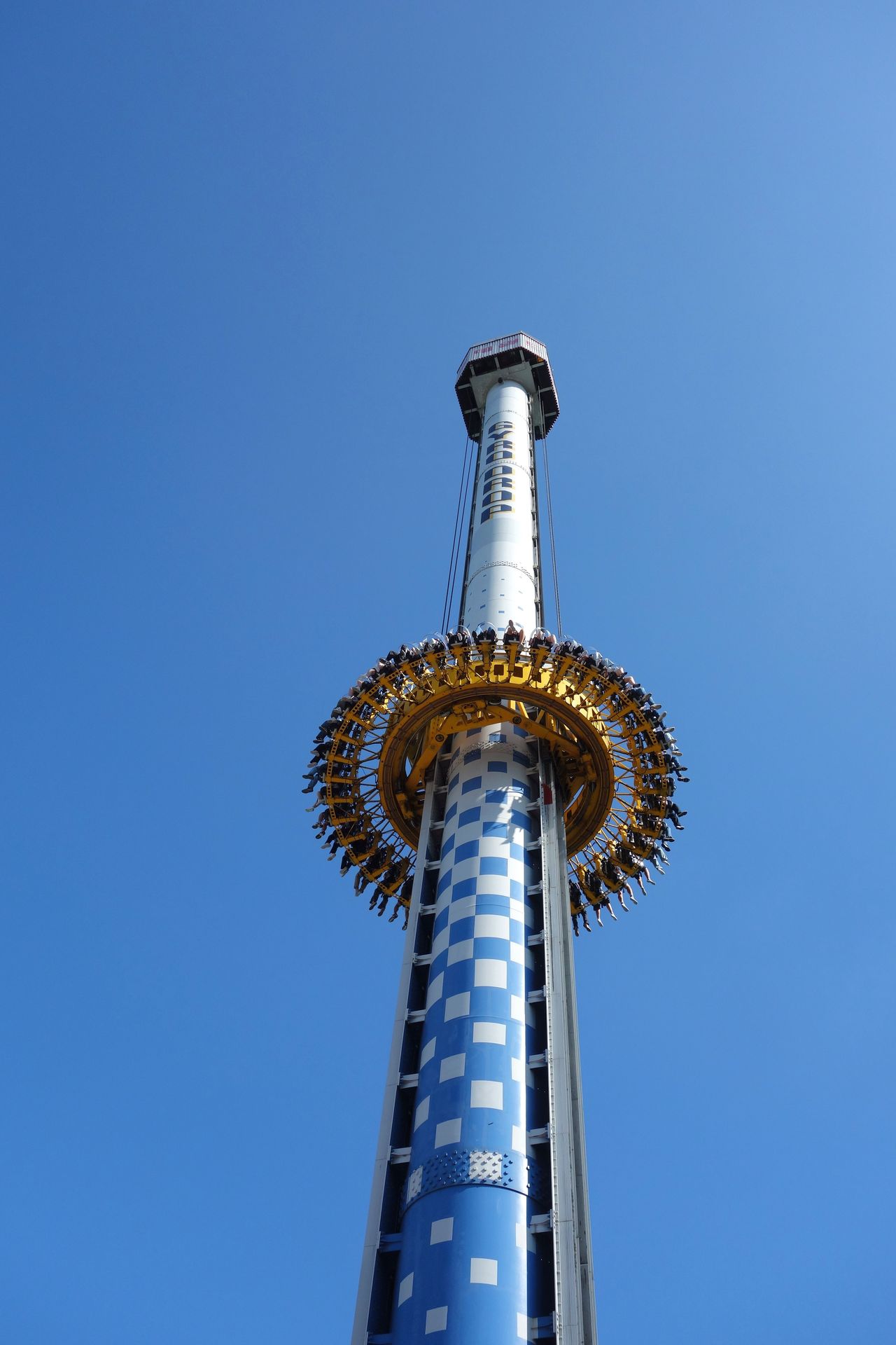 Wobei, die beiden Intamin-Türme kann man jetzt auch nicht als Schönheiten bezeichnen. Der 70 Meter hohe Gyro Drop war 1998 der weltweit erste.