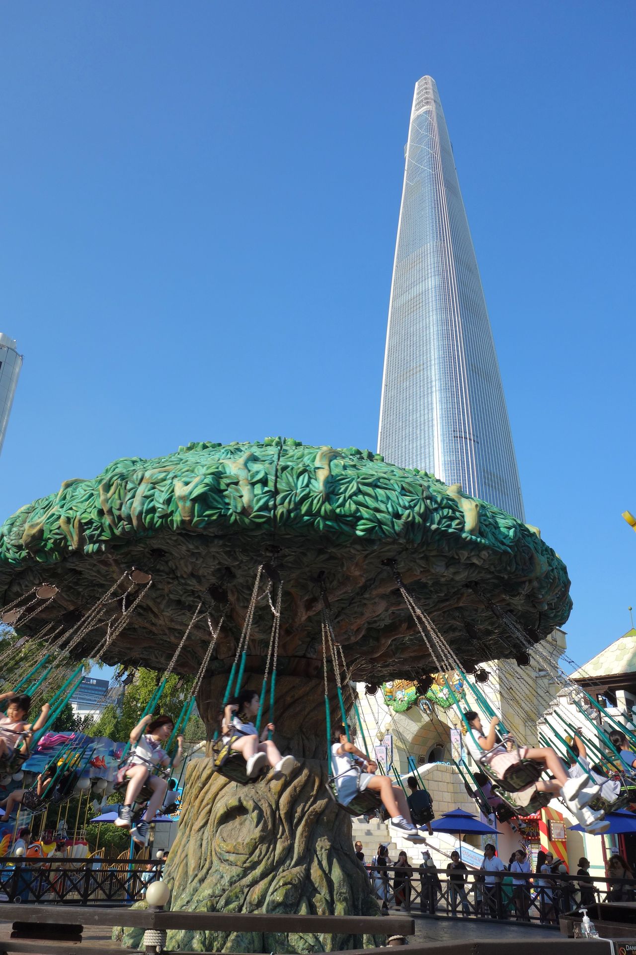 Ein wenig stört der riesige Lotte World Tower ja schon die fantasievolle Optik der magischen Insel.