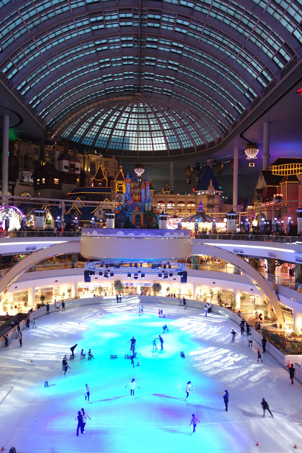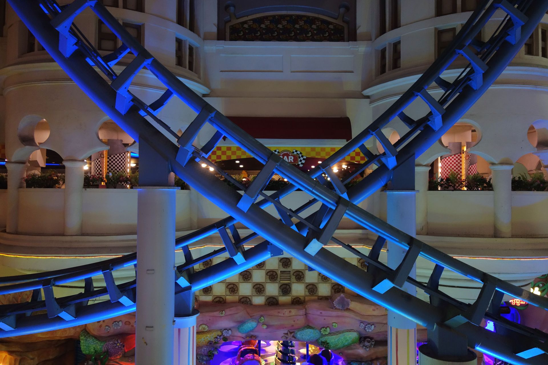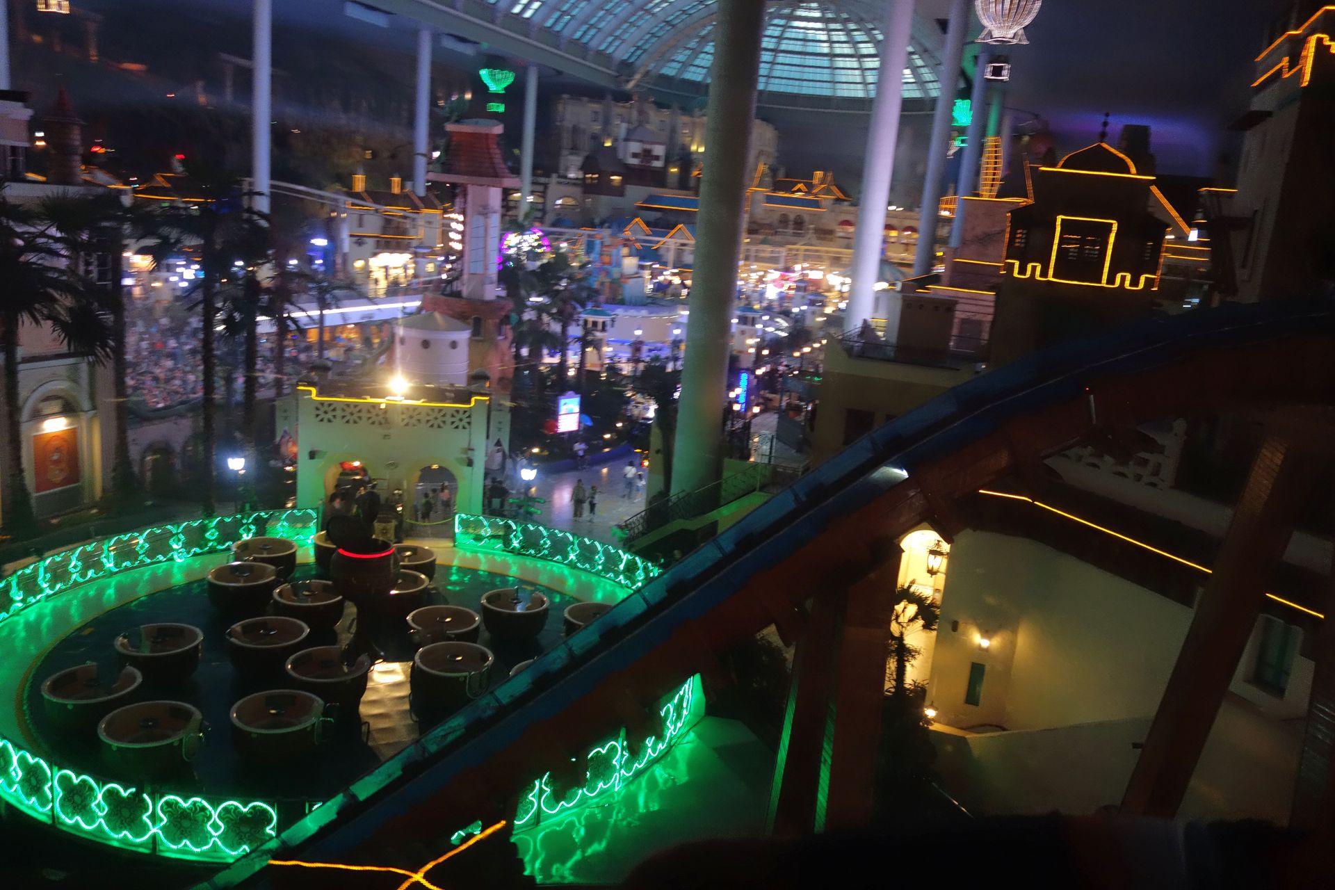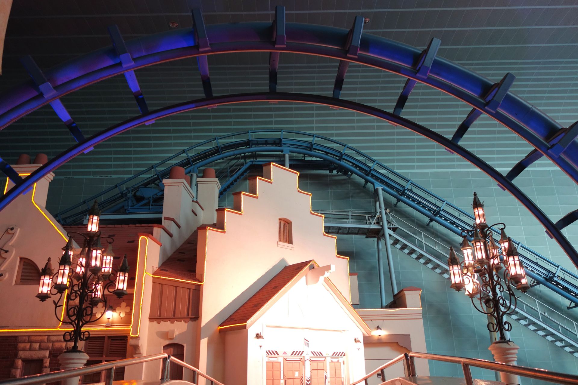Leider konnte ich jetzt keine Angaben zur Größe des Indoor-Teils finden, die im Netz genannte Fläche von rund 13 Hektar bezieht sich auf die gesamte Lotte World inklusive der Magic Island. Sicher ist aber, dass Lotte World im Jahr 1995 ins Guinness Buch der Rekorde aufgenommen wurde als größter Indoor-Freizeitpark der Welt. Tatsächlich würde ich rein optisch behaupten wollen, dass die IMG Worlds of Adventure in Dubai zwar flächenmäßig größer ist, die Lotte World aber beim Volumen noch immer vorne liegen könnte. Immerhin muss die Halle mindestens 40 Meter hoch sein, wenn da mal der Bungee Drop drin stand.