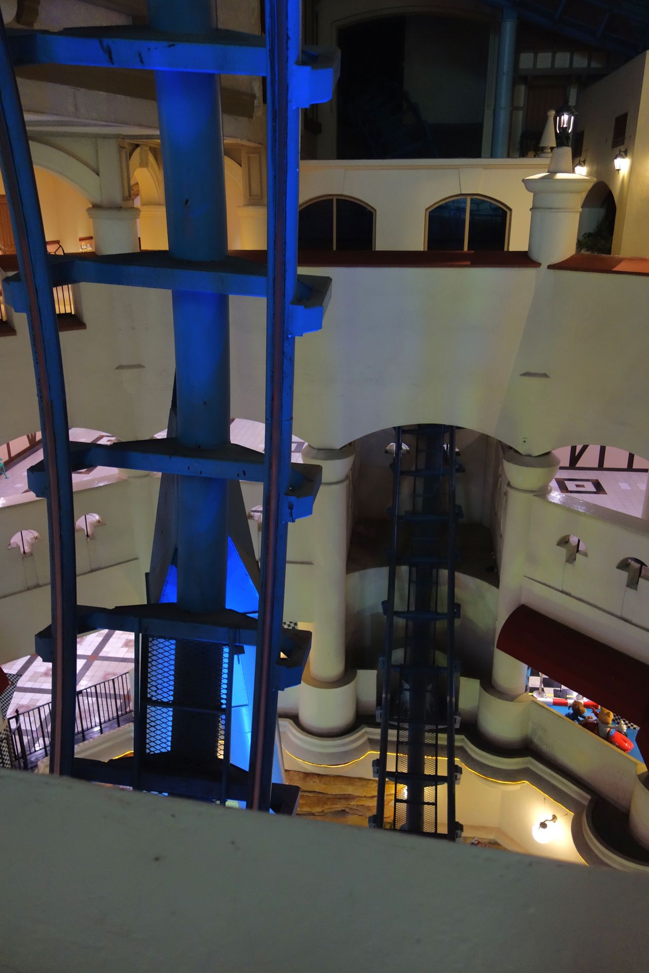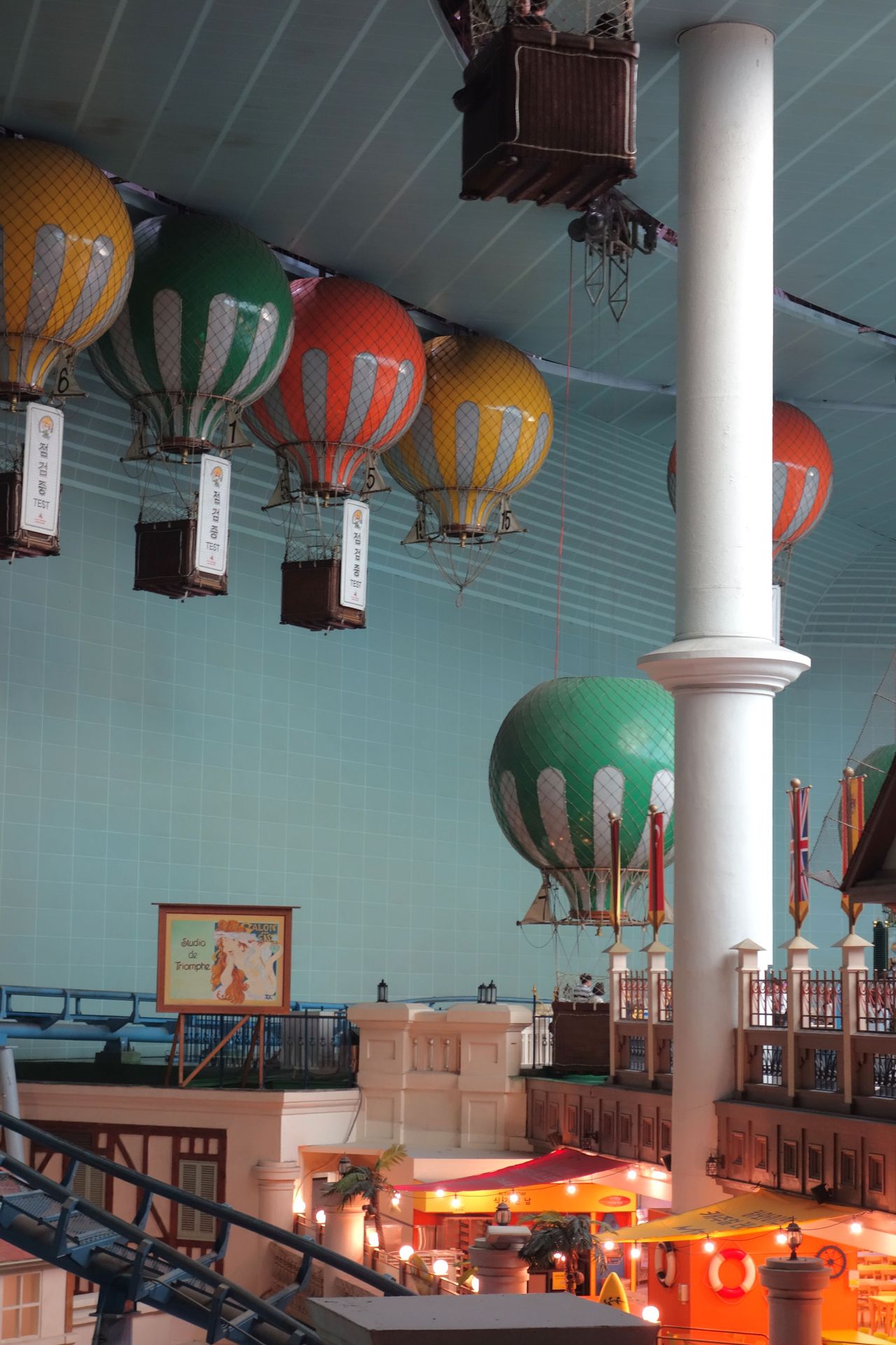 Auch die an einer Deckenschiene durch die Halle gleitenden Heißluftballons sind von Intamin.