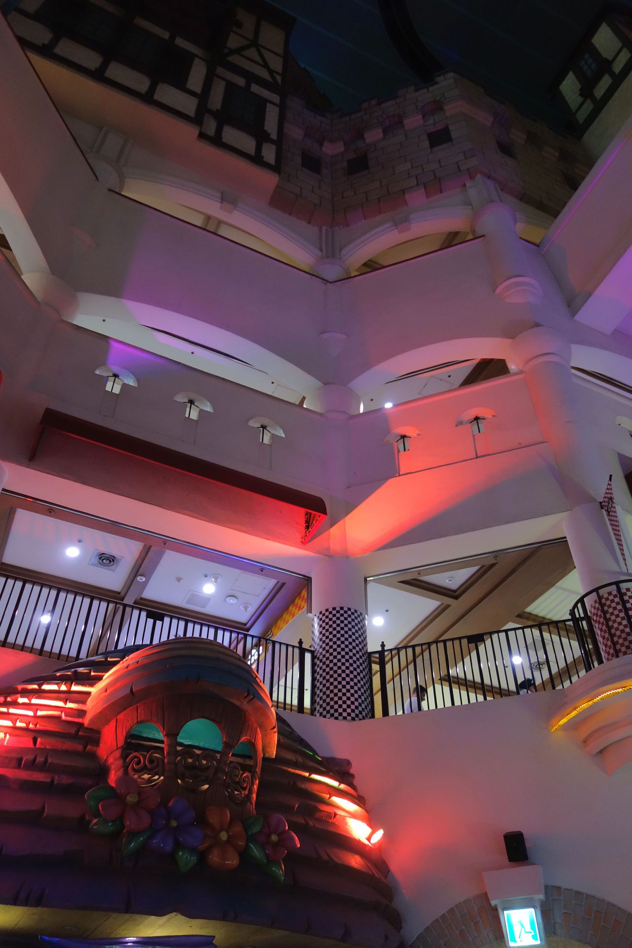 Über Treppen und weitere Gänge folgte ich der Meute zunächst zum Außenbereich Magic Island, der 1990 den Indoor-Park ergänzte.