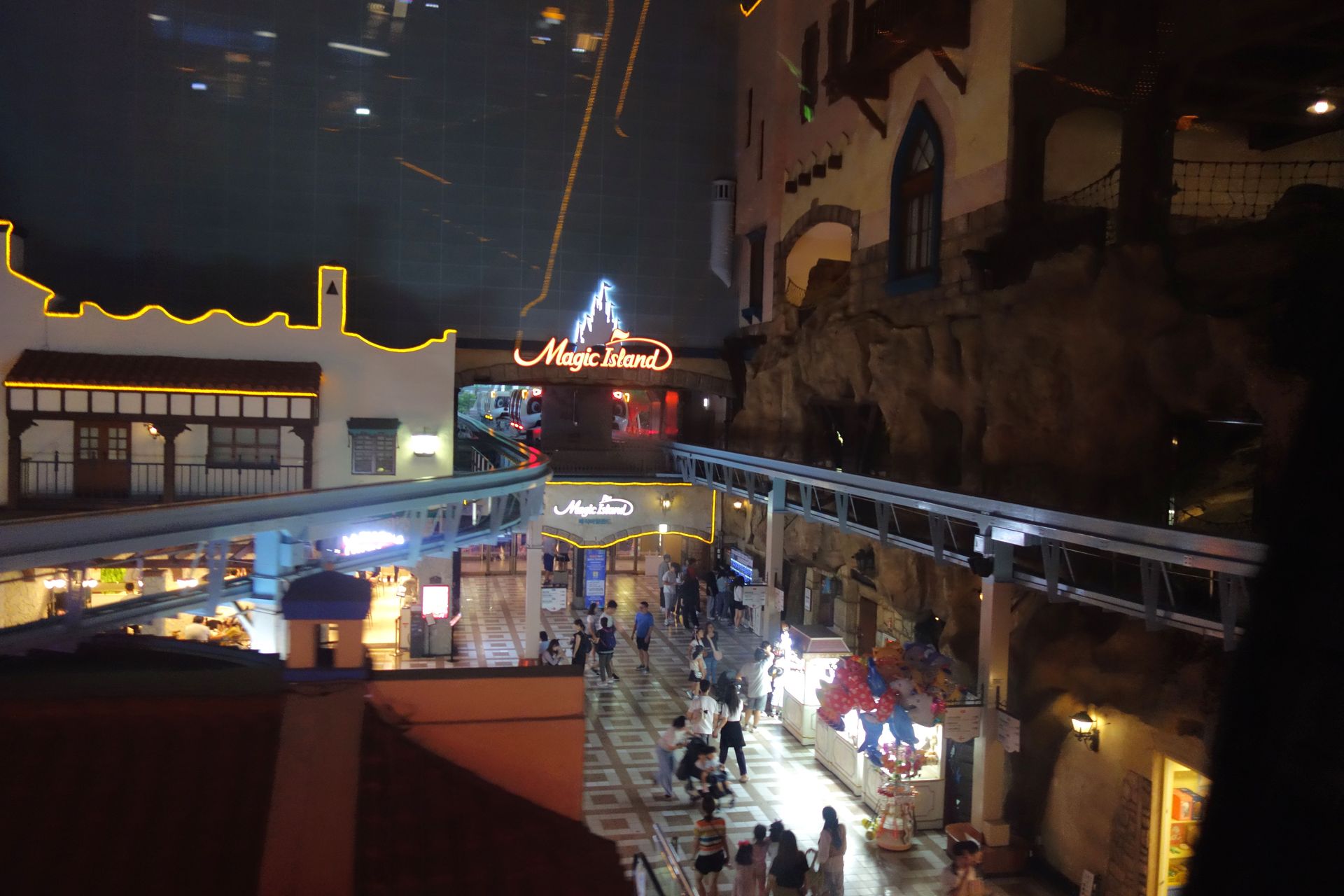 Leider ließ man nun am Abend die Schleife über die Magic Island aus, die fahrerlose Monorail verkehrte nur noch in der Halle.