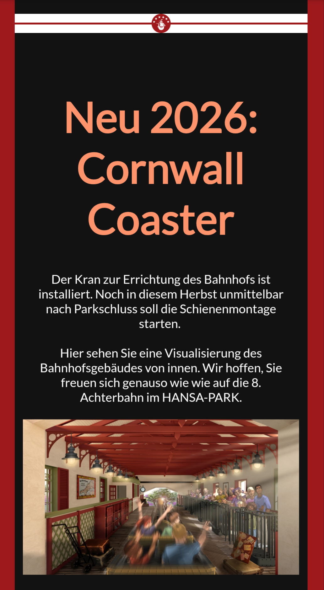 Inzwischen sind die ersten Schienen eingetroffen und der Aufbau beginnt. Doch sehen Sie selbst unsere nächste Baudoku zum Cornwall Coaster. Die Doku wurde übrigens schon mit Ausschnitten der neuen Musik unterlegt, die wir für unsere 8. Achterbahn in Auftrag gegeben haben.