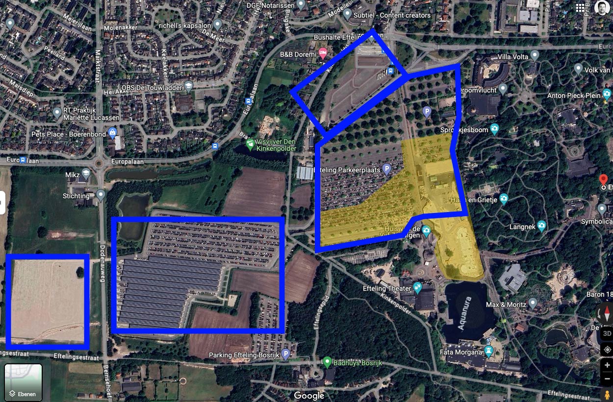 Dass man dort vorne baut finde ich ja in Ordnung, dass Parkplätze fehlen werden ist eigentlich in Ordnung. Dann müsste die Anbindung an die Bahnhöfe in Tilburg und s'Hertogenbosch mit parkeigenem Express-shuttle richtig stark sein um die ja eigentlich ganz ÖPNV-freundlichen Niederländer so in den Park zu bekommen.