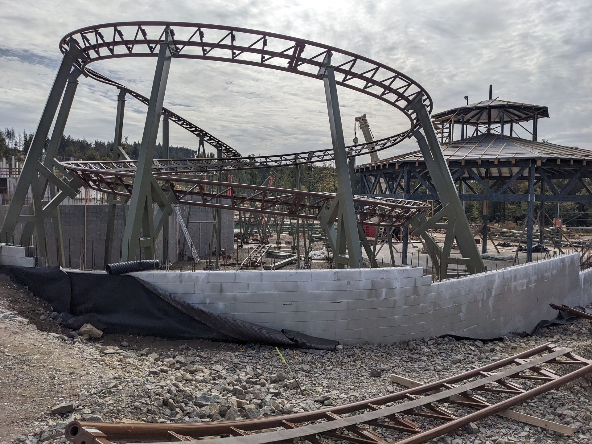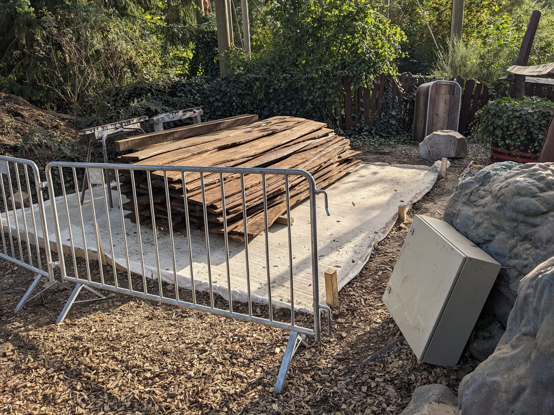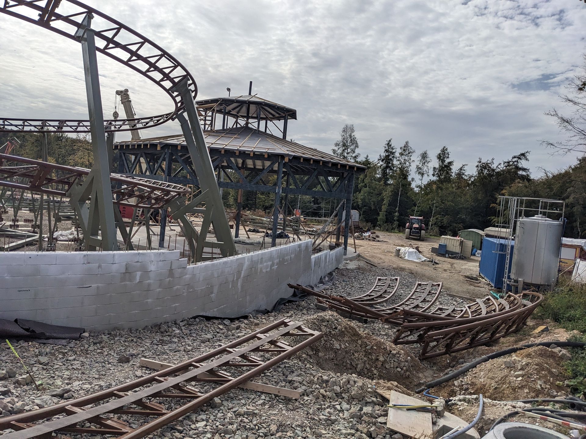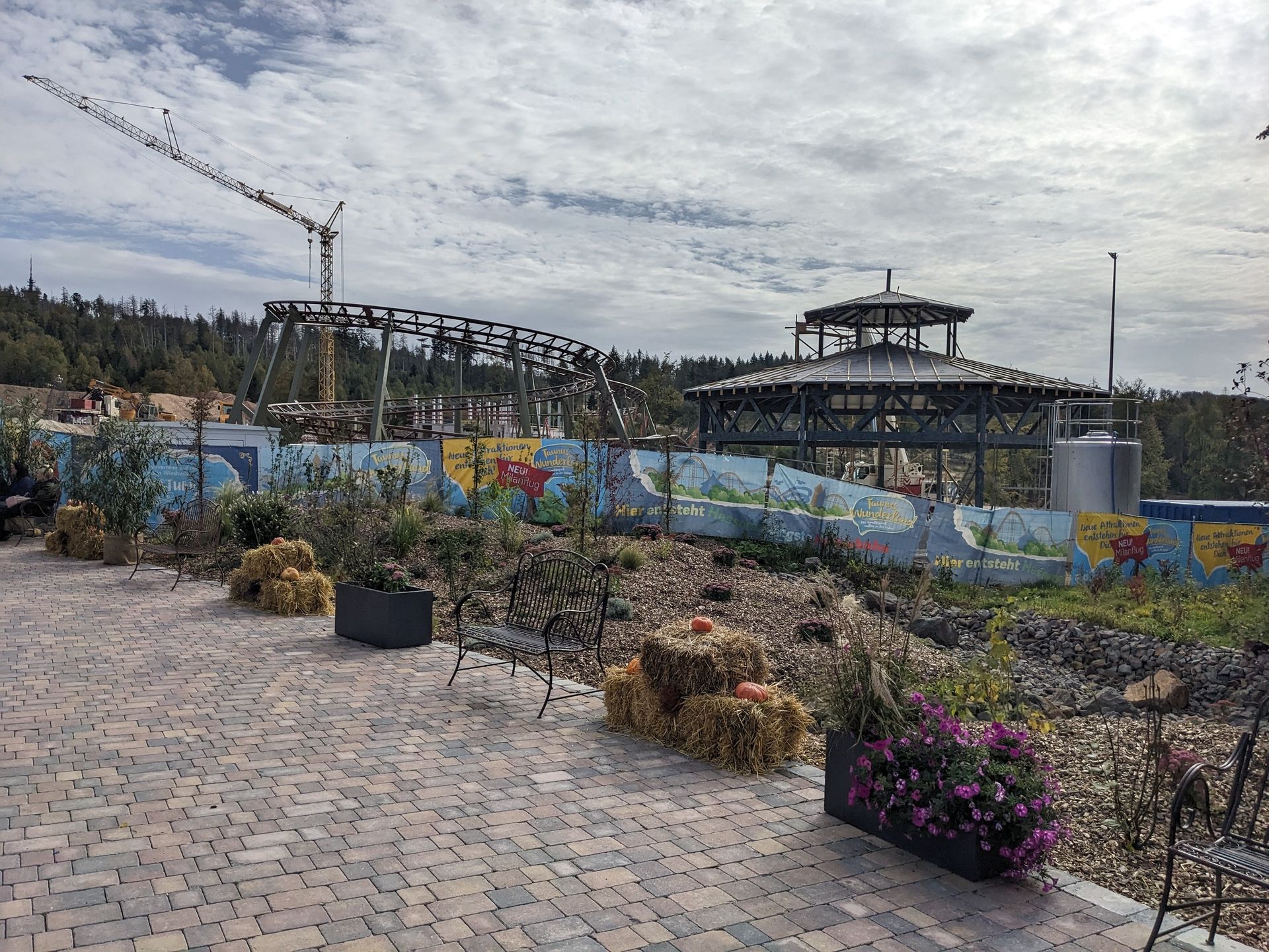 Blick über den Zaun zur großen Erweiterung mit der neuen Achterbahn: