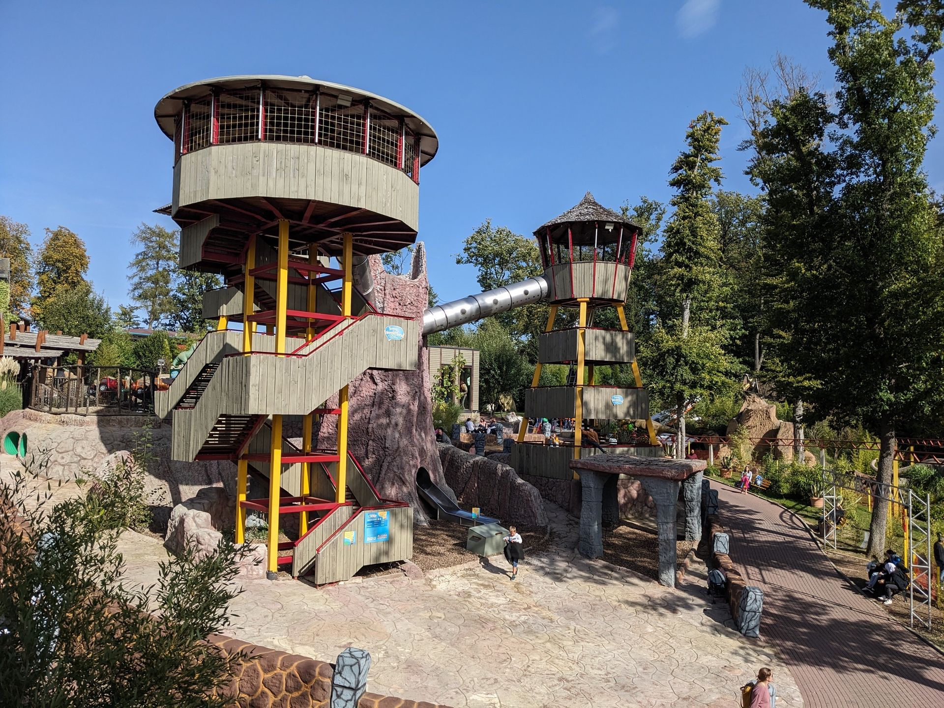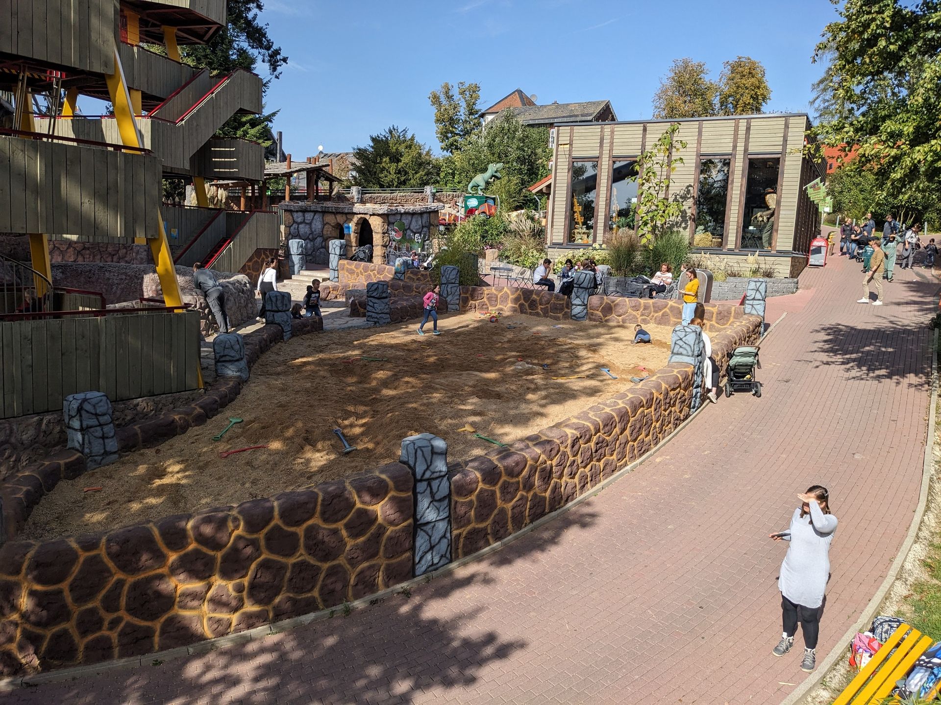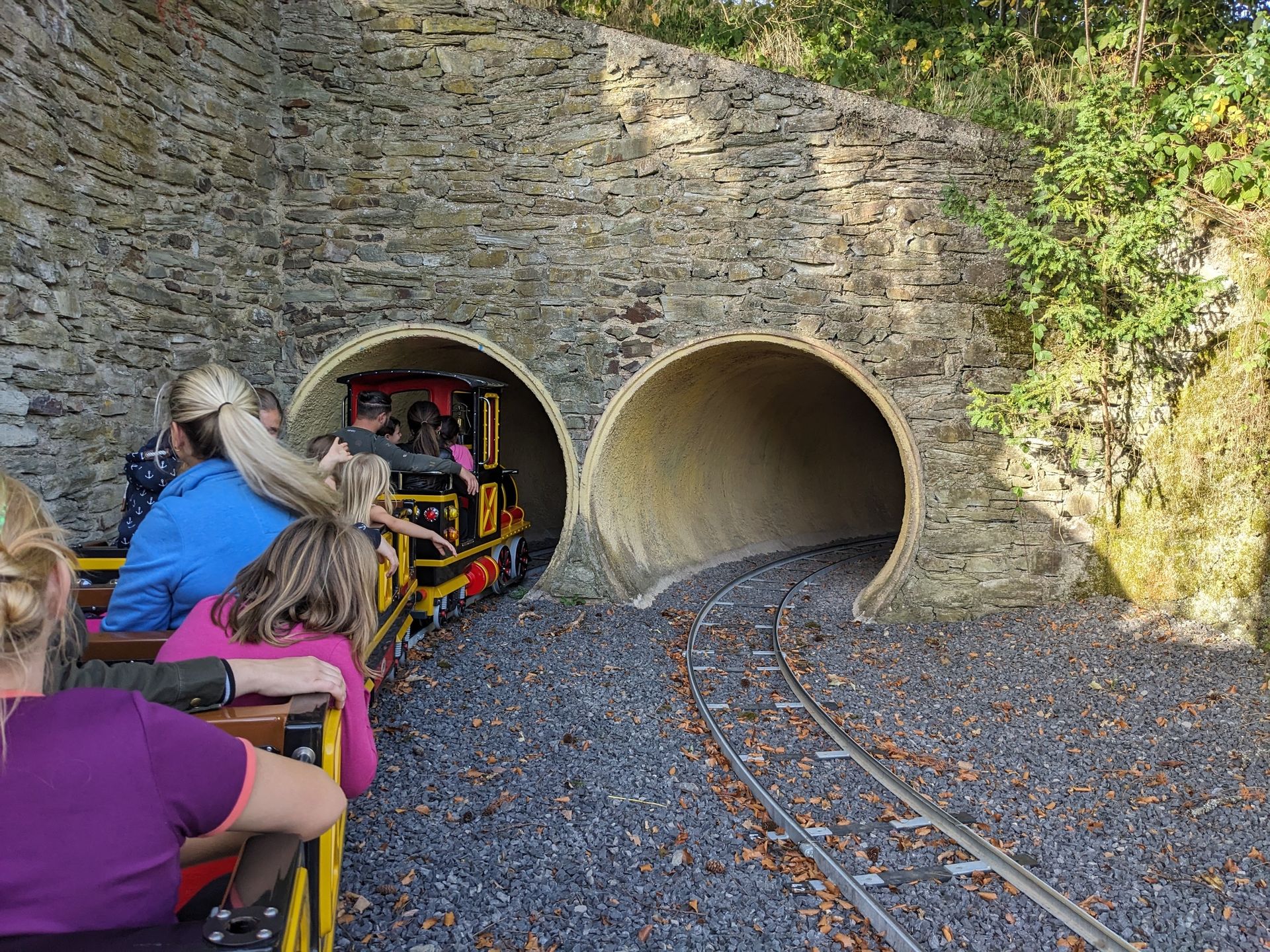 Früher gab es hier am hintersten Ende des Parks eine doppelte Westernbahn mit zwei Schienenkreisen durch die Miniatur-Westernstadt. Der innere Kreis ist schon lange verschwunden gewesen (der war in meiner Kindheit auch gefährlich, da die Kinder immer in den noch fahrenden äußeren Kreis gelaufen sind). Inzwischen wurde aber auch die verbliebene Bahn vollkommen ersetzt. Geblieben sind nur noch die Tunnel. Die STreckenführung ist komplett neu und nutzt die ganze Fläche und beide parallelen Tunnel. Ebenso wurde komplett neue Thematisierung errichtet: