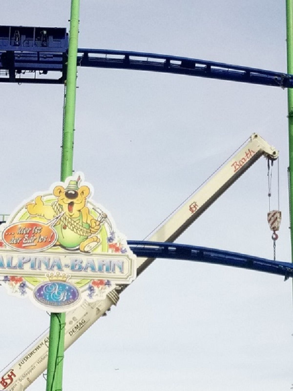 Die eine Achterbahn gerade um die Ecke im Taunuswunderland aufgebaut, wird hier geholfen wieder schnell abzubauen.