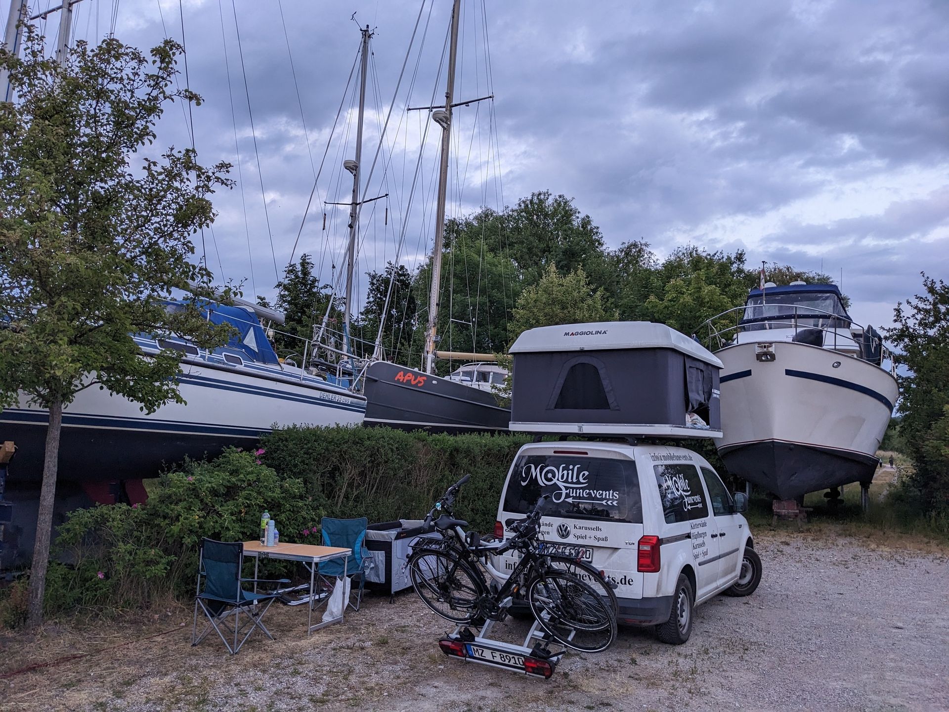 Super cooler Stellplatz! Auch die "Wohnmobile" bekommen die Chipkarten für die Einrichtungen des Hafens samt das super Sanitärgebäudes mit ganz tollen Familienbädern. Da kann man echt nochmal hinfahren!