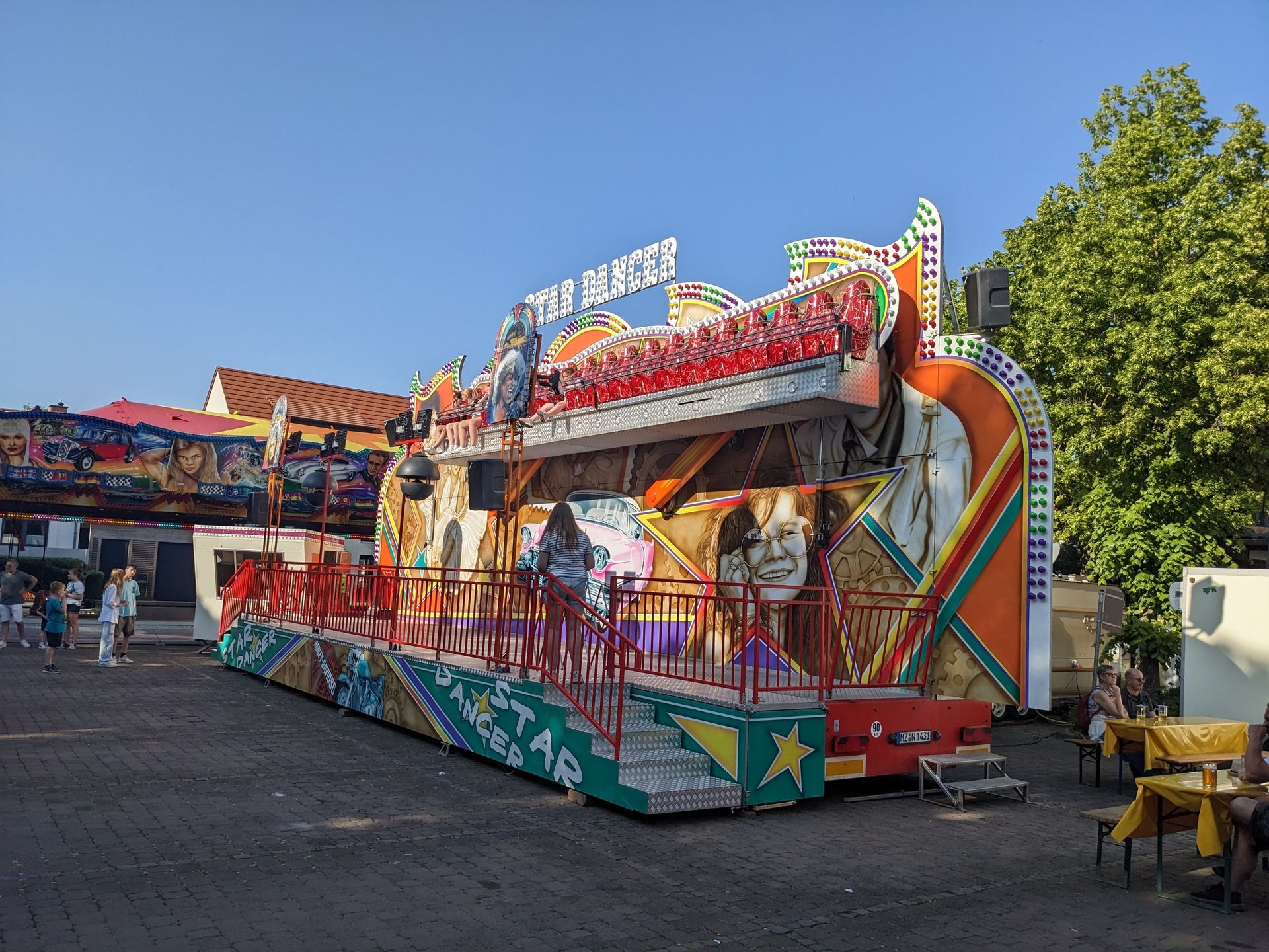 Das Albansfest in Bodenheim ist in erster Linie ein Weinfest, dessen Stände sich hoch zum Reichsritterstift ziehen. Der Parkplatz am Dolles ist aber immer mit Schaustellern belegt. Hier ein kleiner Rundgang über dem Platz in unserem Nachbarort: