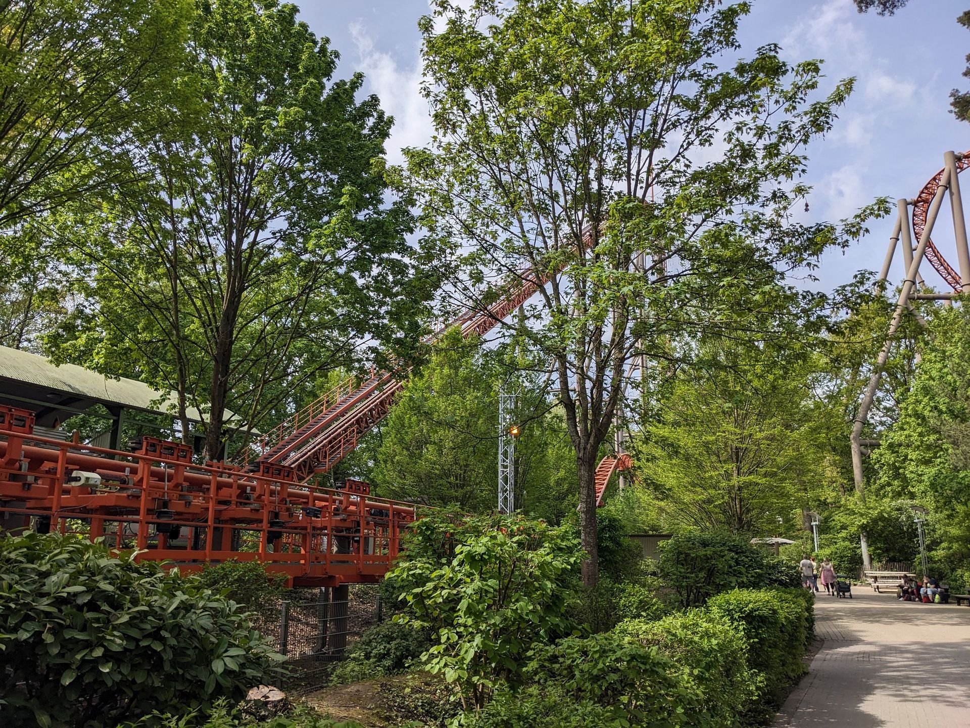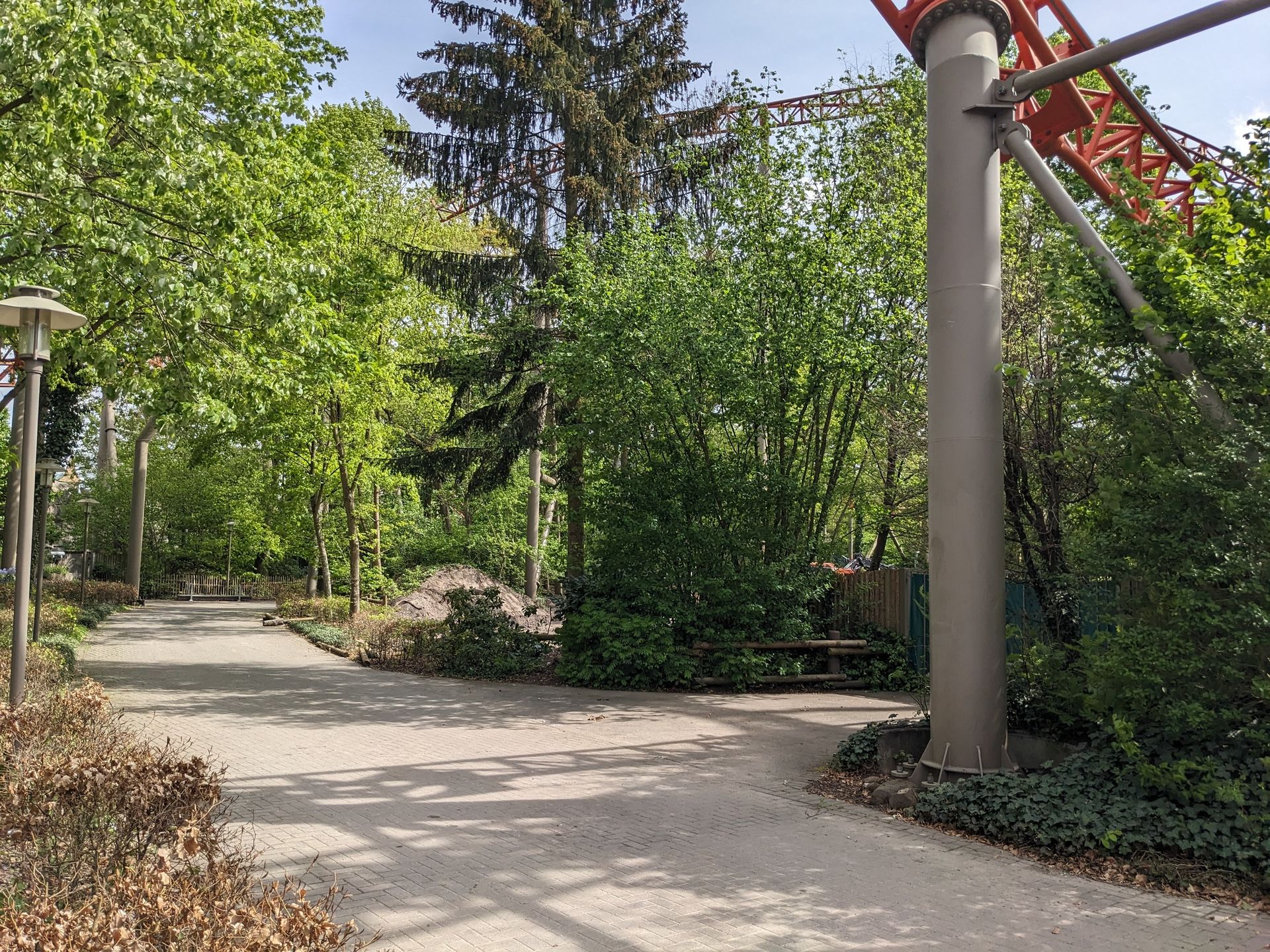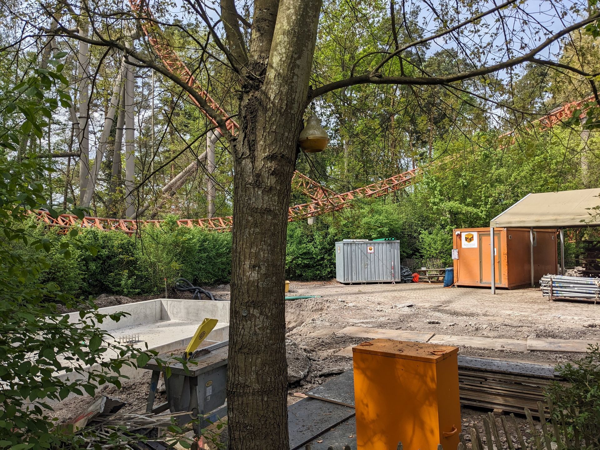 Diese beiden Attraktionen sollen ja noch dieses Jahr eröffnen, im nächsten Jahr folgt dann noch die Safari, deren Strecke derzeit aber auf schon fleißig auf dem früheren Picknickplatz gebaut (wo dann das Flugzeug hingesollt hätte und der irgendwann einfach abgetrennt wurde...). Kann man von EGF aus gut erkennen, hier ein Blick um die Ecke von Wickie Splash aus: