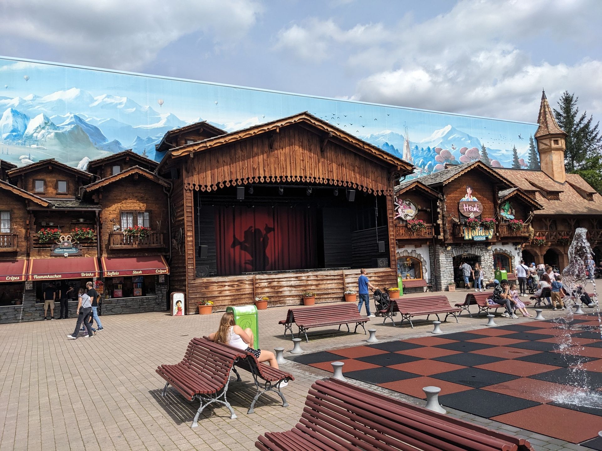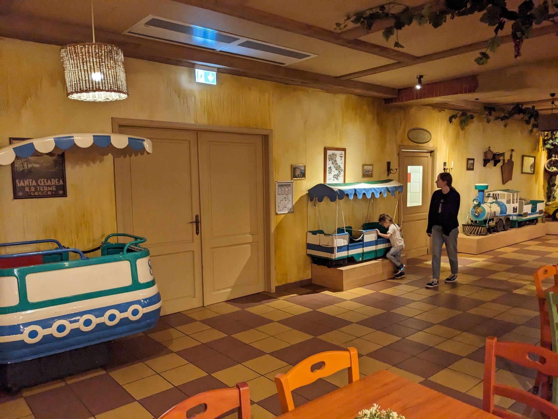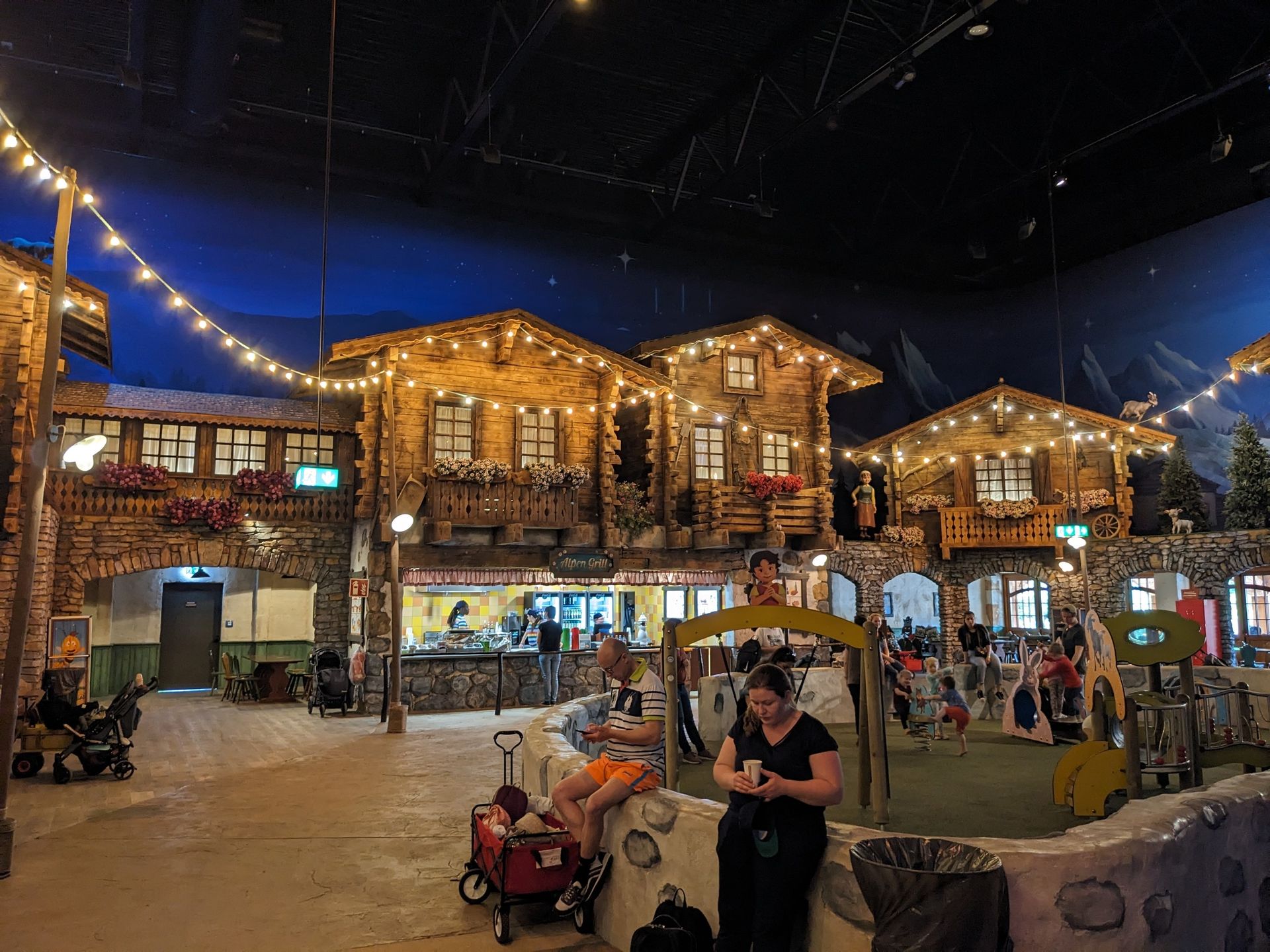 Außerdem gibt es in der Halle natürlich noch eine Gastronomie und davor den Kleinkinderspielplatz: