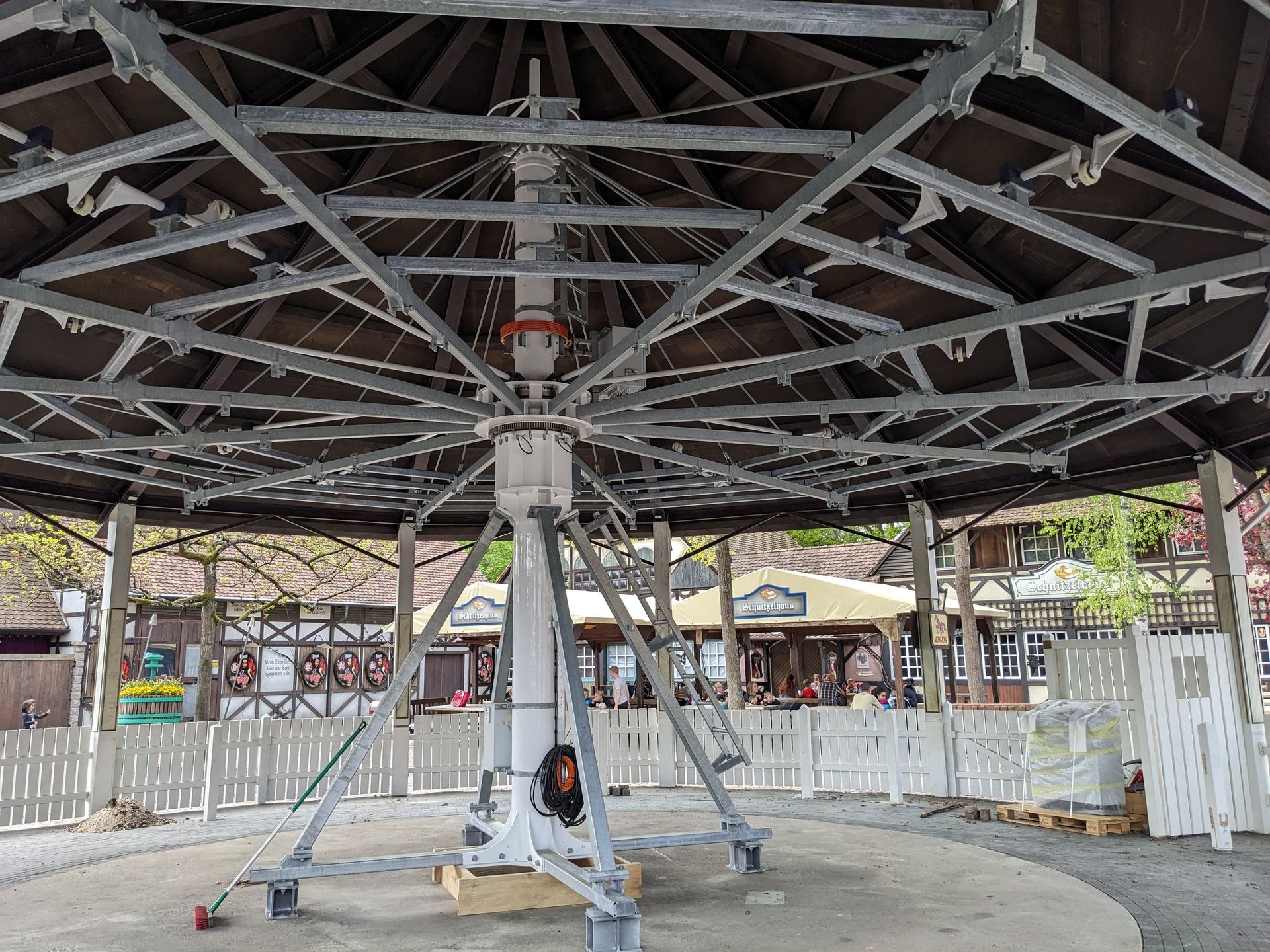 Im Winter wurde bekanntlich das alte Pferdekarussell abgebaut und verkauft. Der Rohbau eines neuen Karussells mit auf- und abgehenden Pferden/Figuren steht bereits wieder in dem Pavillon, obwohl bei den Neuheitenankündigungen und Zukunftsplänen nie die Rede von diesem Karussell war:
