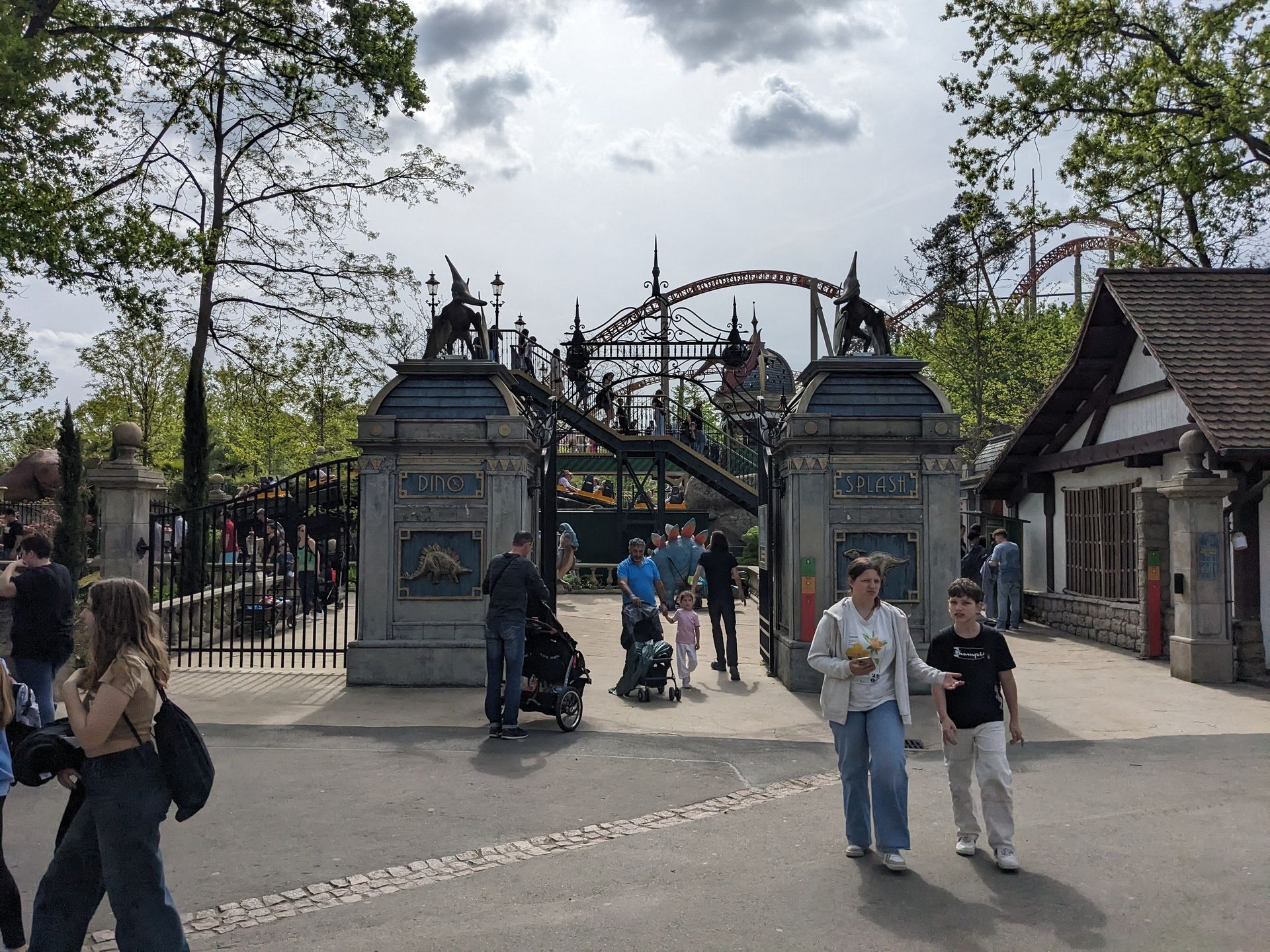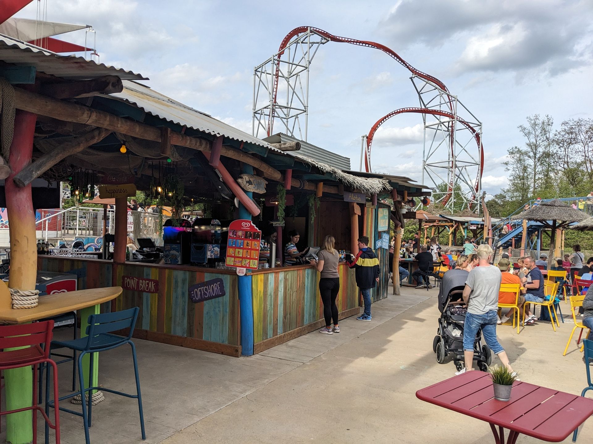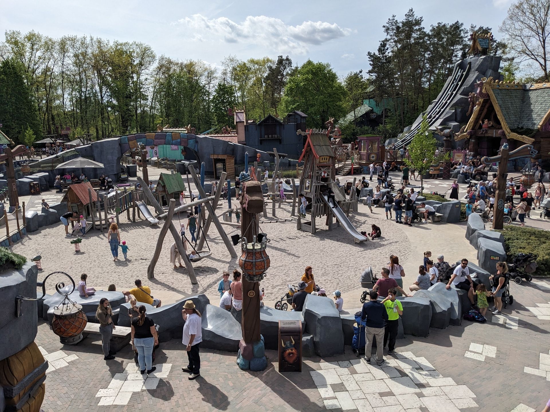 Spielplatz und dahinter der Disco-Coaster: