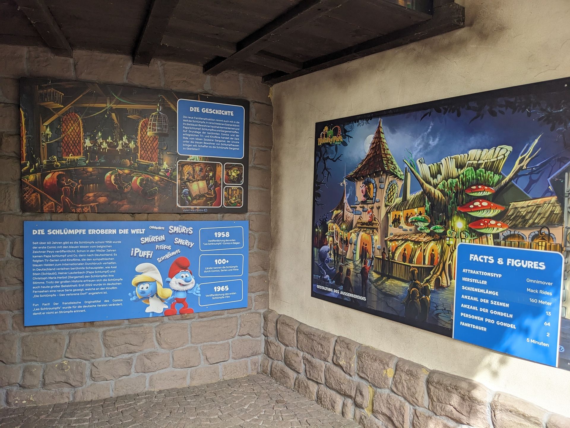 Wie lang die Warteschlange ist, konnte ich nicht genau erkennen, der Wartebereich im Innenhof am Turm war aber voll und trotzdem "nur" 2 Gondeln unterwegs, aber mit 2 Mitarbeitern. Wir haben natürlich den Expresspasseingang genommen