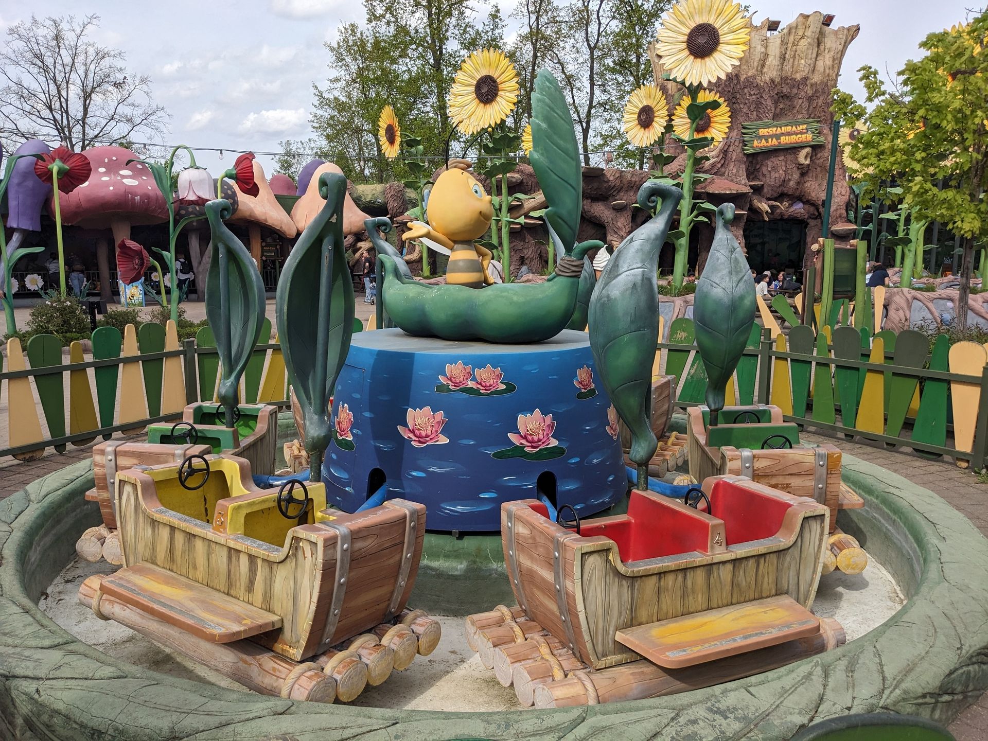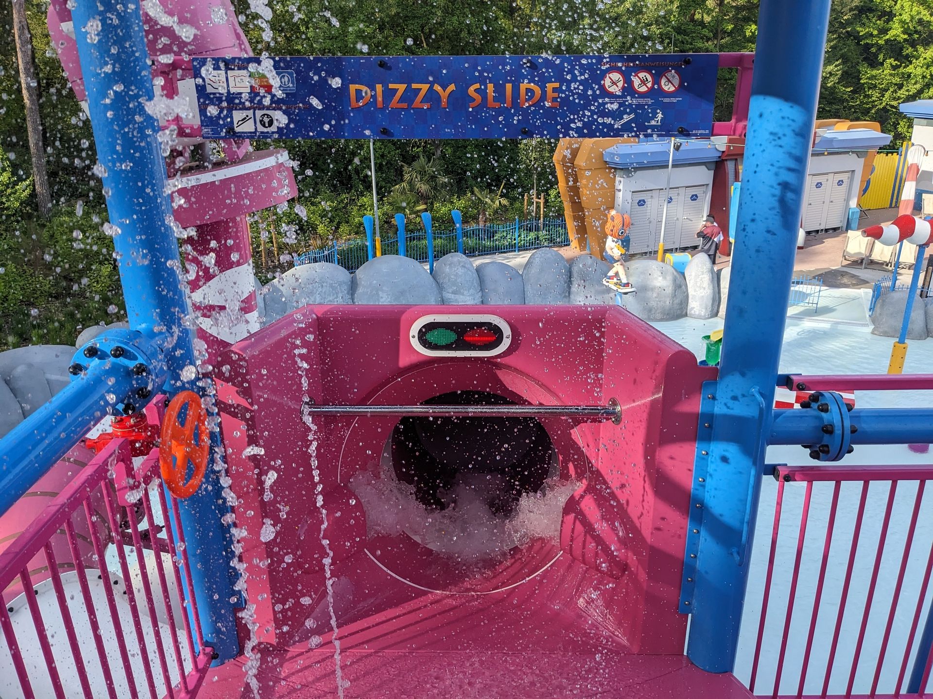 Der Blütensplash ist auch noch ohne Wasser und ohne die Wassereffekte passend zur Fahrt. Damit ist das ja nur noch halb so witzig. Dürfen wir aber leider erst ab 0,96m fahren (warum eigentlich?)