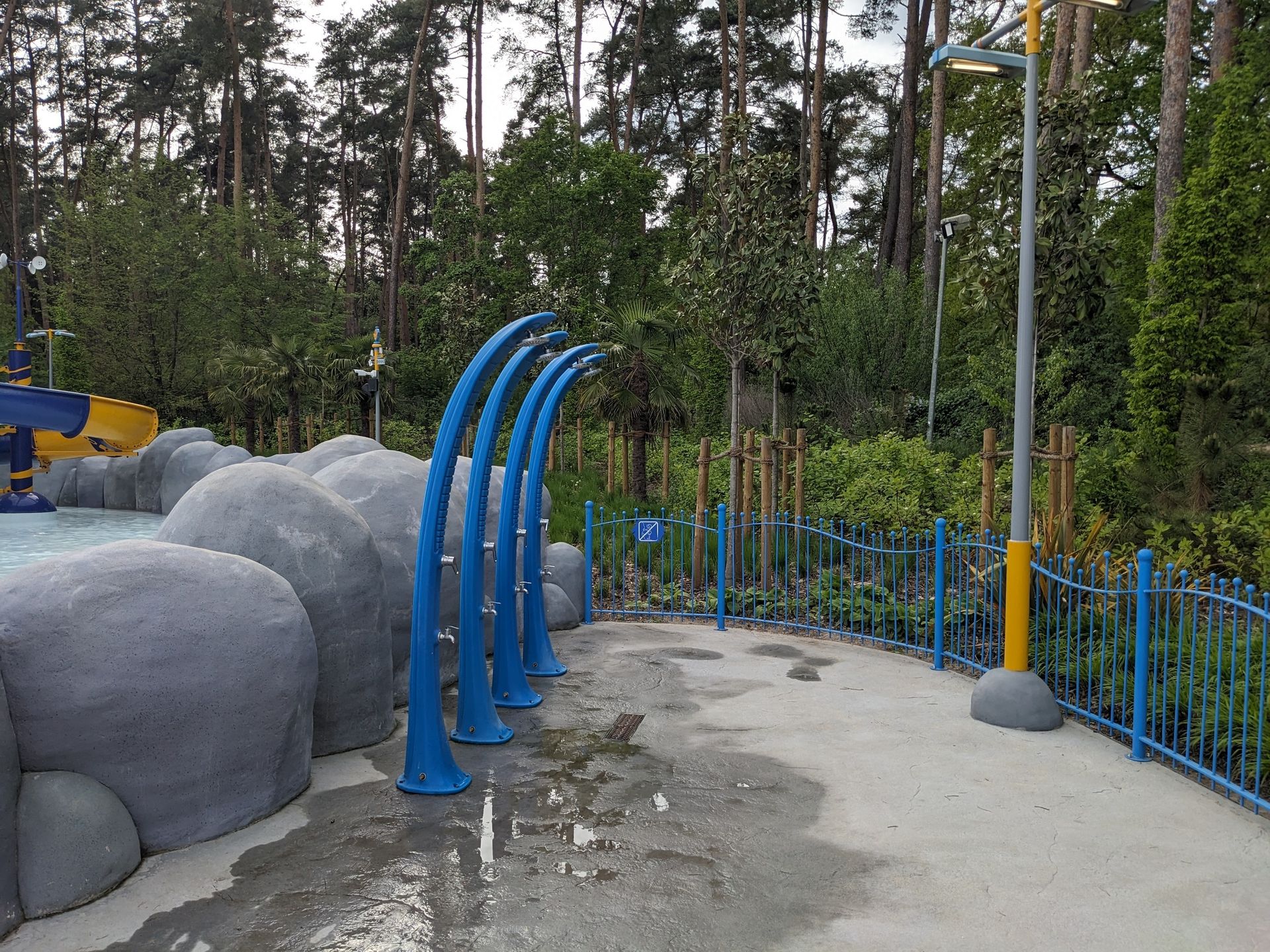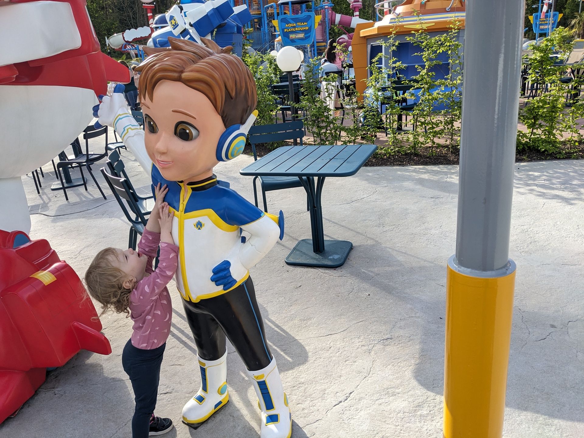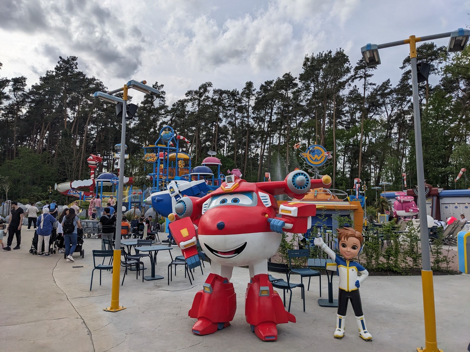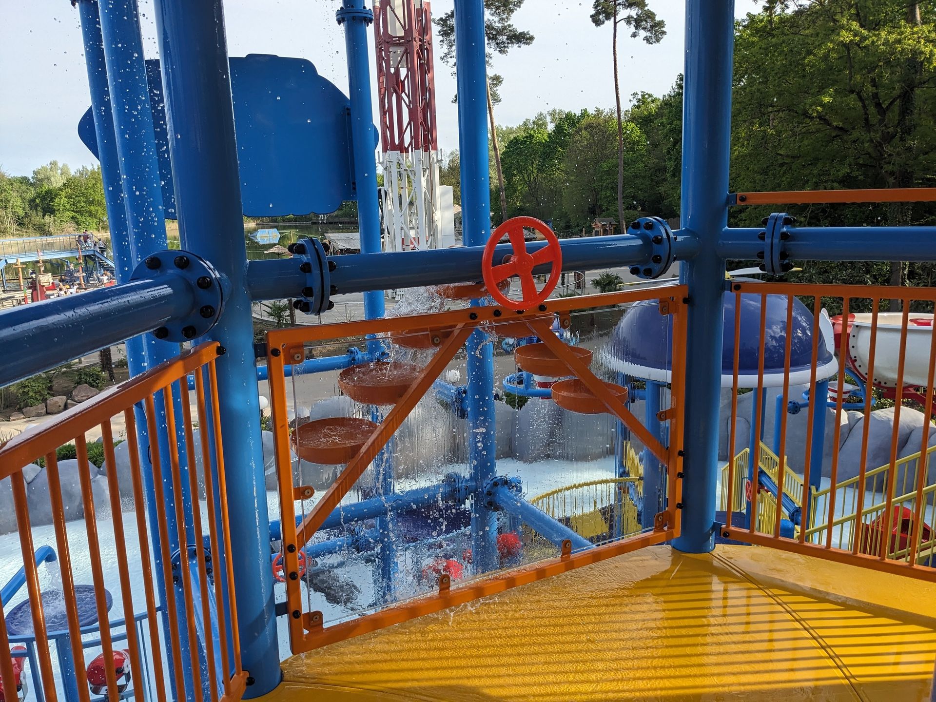 Doch uns zieht eher die letztjährige Neuheit hier her, die eben schon im Hintergrund zu sehen war: Der Wasserspielplatz Super Wings mit durchaus 3 ausgewachsenen Rutschen: