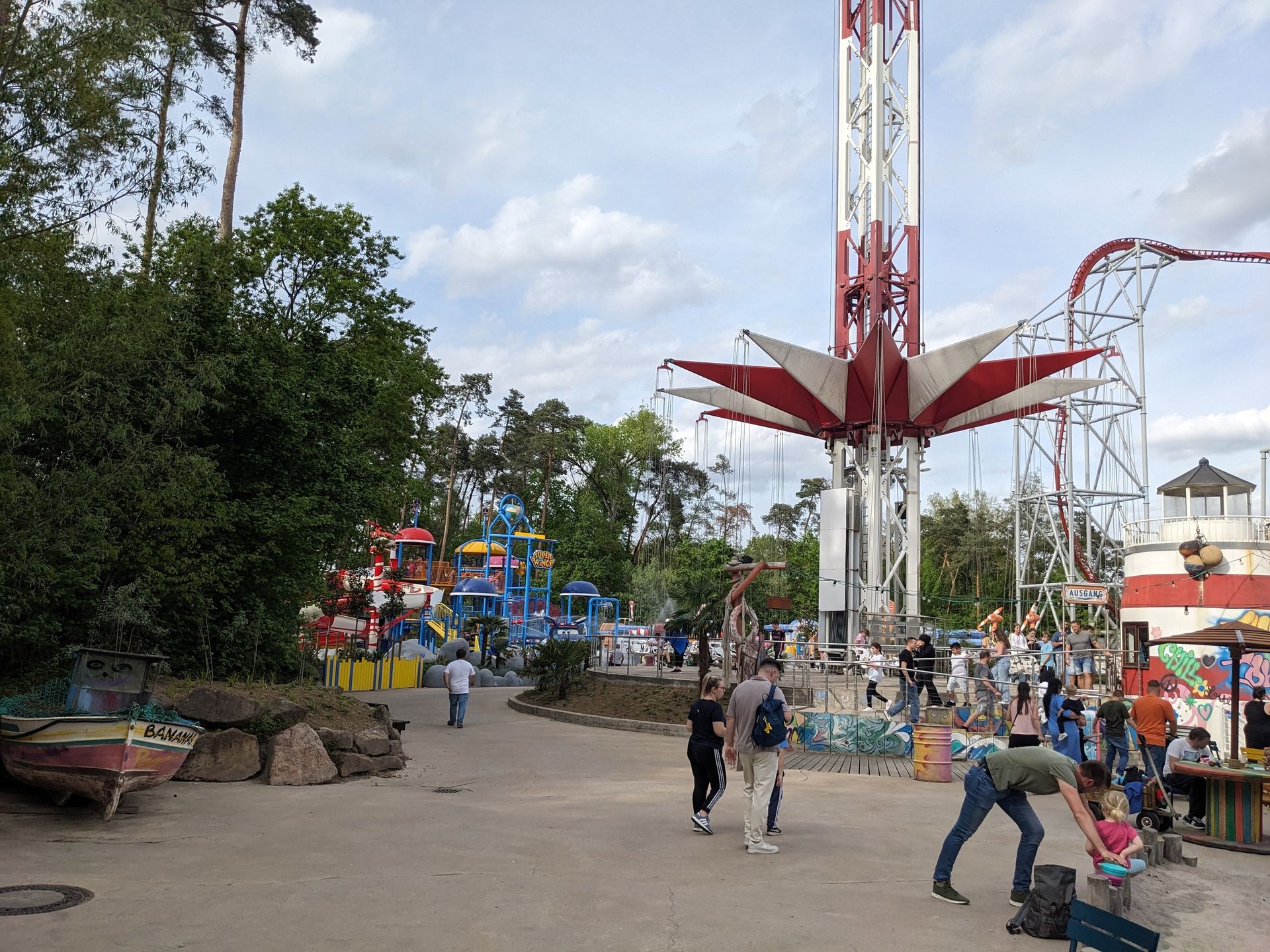 Wickie Splash lief quasi den ganzen Tag nicht. Man versuchte gelegentlich wieder Gäste mitzunehmen, aber soweit wir mitbekommen haben, wurde bereits bevor die ersten vollen Boote wieder die Station erreichten wieder mit der Evakuierung begonnen...