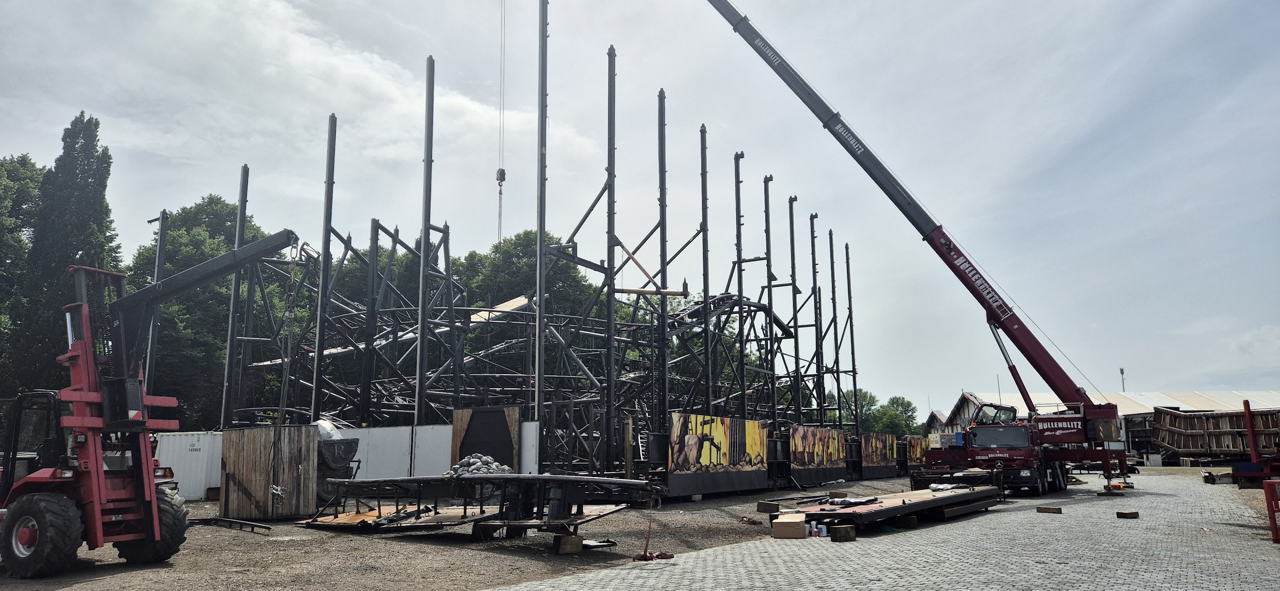 Gestern eine kurze Platzrunde gemacht, Festzelt steht schon zum größten Teil. Ritters Biergarten ist geöffnet und Steinmeister ist auch schon im Aufbauprozess, ebenso der der Förderturm.