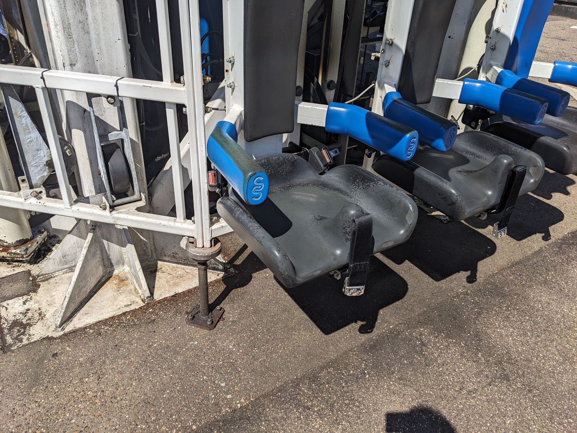 Auch hier werden die Fastpassler nach dem Aussteigen und Leeren der Station über den Ausgang eingezählt. Erst danach wird begonnen die Gäste aus der regulären Warteschlange einzuzählen und sie in den Stationsbereich einzulassen. Dann wieder doppelte Bügelkontrolle bevor es losgeht.