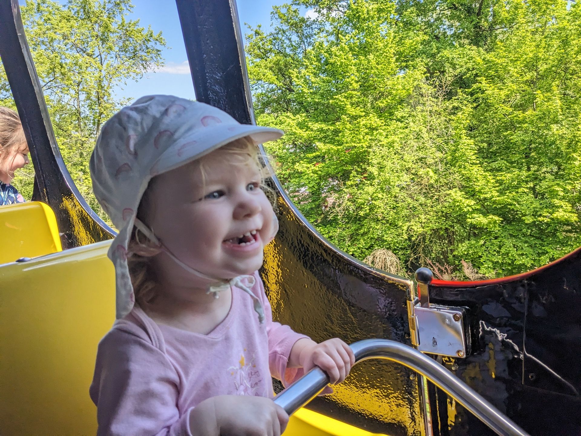 Nochmal eine gemütliche Eisenbahn, hier darf (und muss) Marie wenigstens schon alleine fahren: