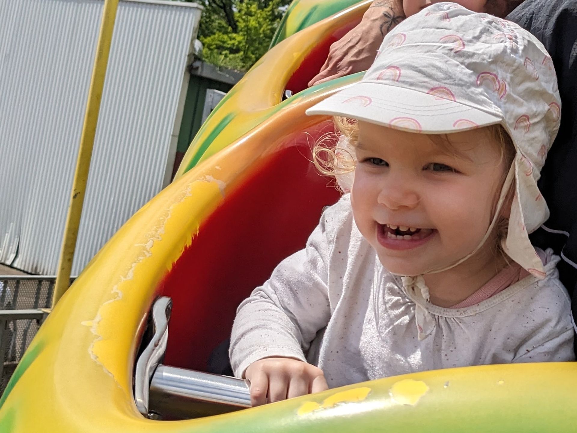Ich hatte ja etwas Bedenken, weil Marie im Oktober die Schiffschaukel gar nicht toll fand. Hier hatte sie aber einen riesen Spaß, auch an der Fast-