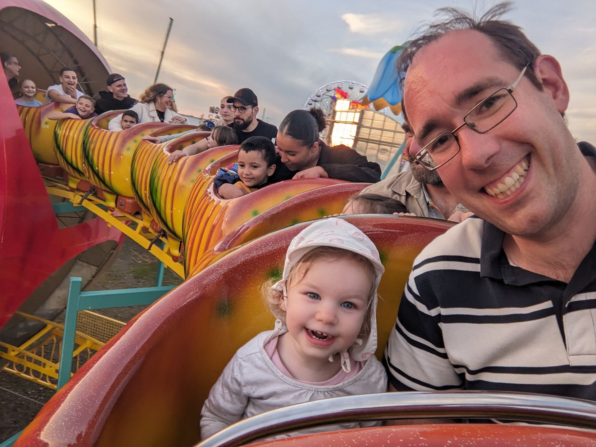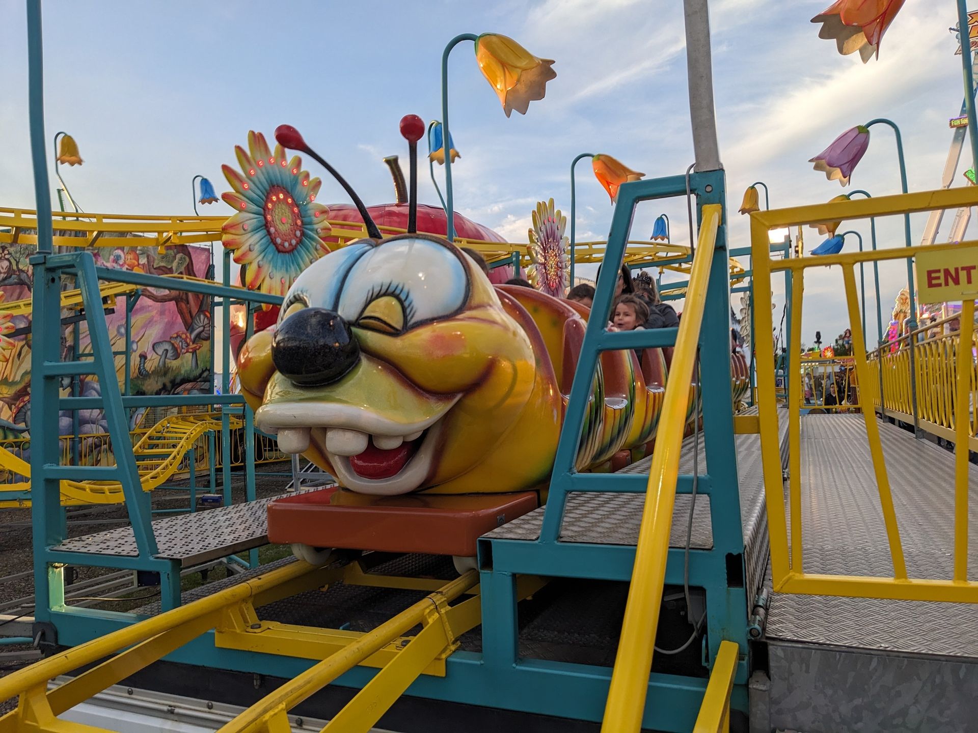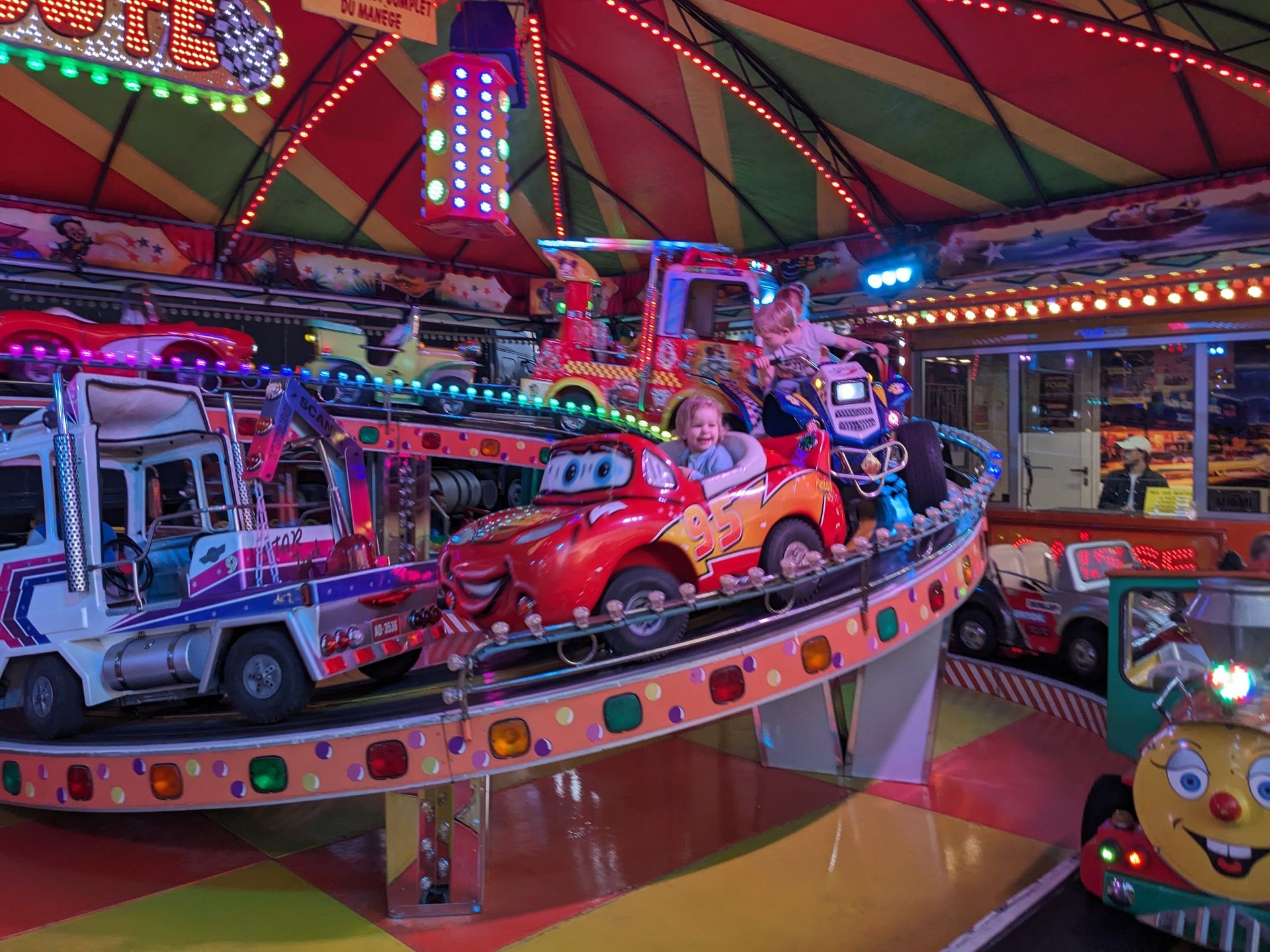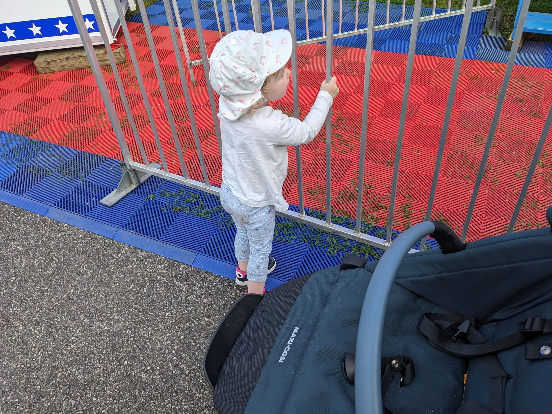 Marie darf so lange gegenüber Kinderschleife fahren. Zumindest bis sie irgendwann der Meinung ist, die nächste Runde unbedingt auch im Stehen fahren zu wollen.