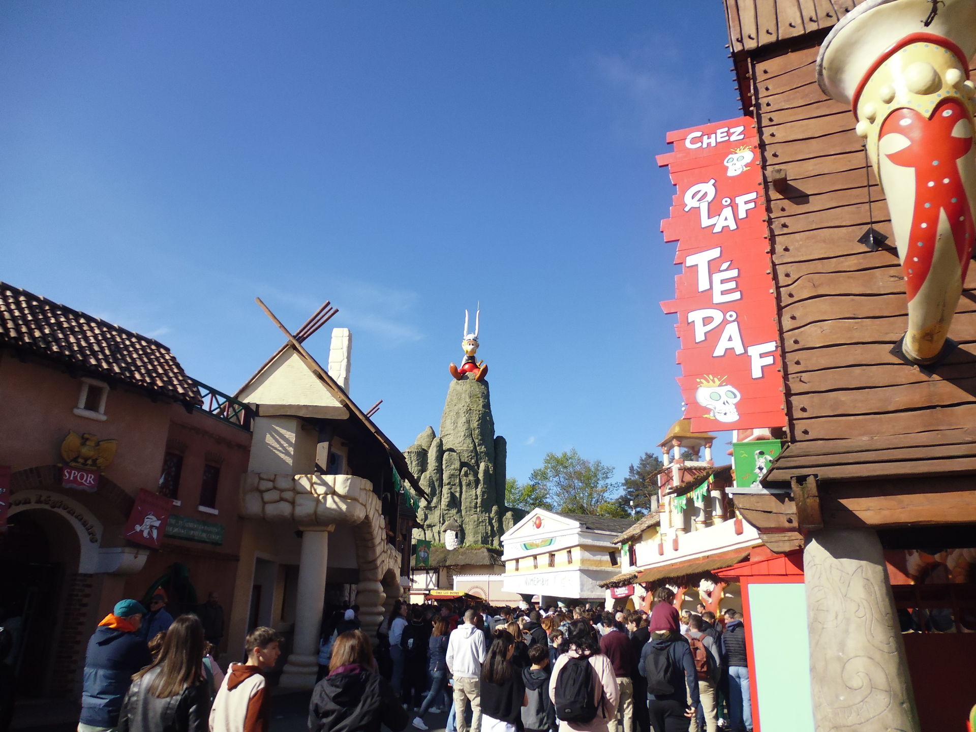 Was halt auch nicht half, waren die unglücklichen Ausfälle zweier nah am Eingangsbereich gelegener Top-Attraktionen gleich zur Parköffnung. Kann leider schon mal passieren, ja. Aber der Park war halt denkbar schlecht darauf vorbereitet, die so entstehenden Ausweich-Besuchermassen aufzusaugen. Soweit wir das von der wegen der zahlreichen Störungen eh immer wieder stillstehenden Schlange für Tonnerre 2 Zeus aus beobachten konnten, war zu dem Zeitpunkt rein von der Taktung her geschätzt z.B. bloss ein Zug auf Goudurix im Einsatz. Ein Cedar-Fair-Verantwortlicher würde da doch die Krise kriegen.