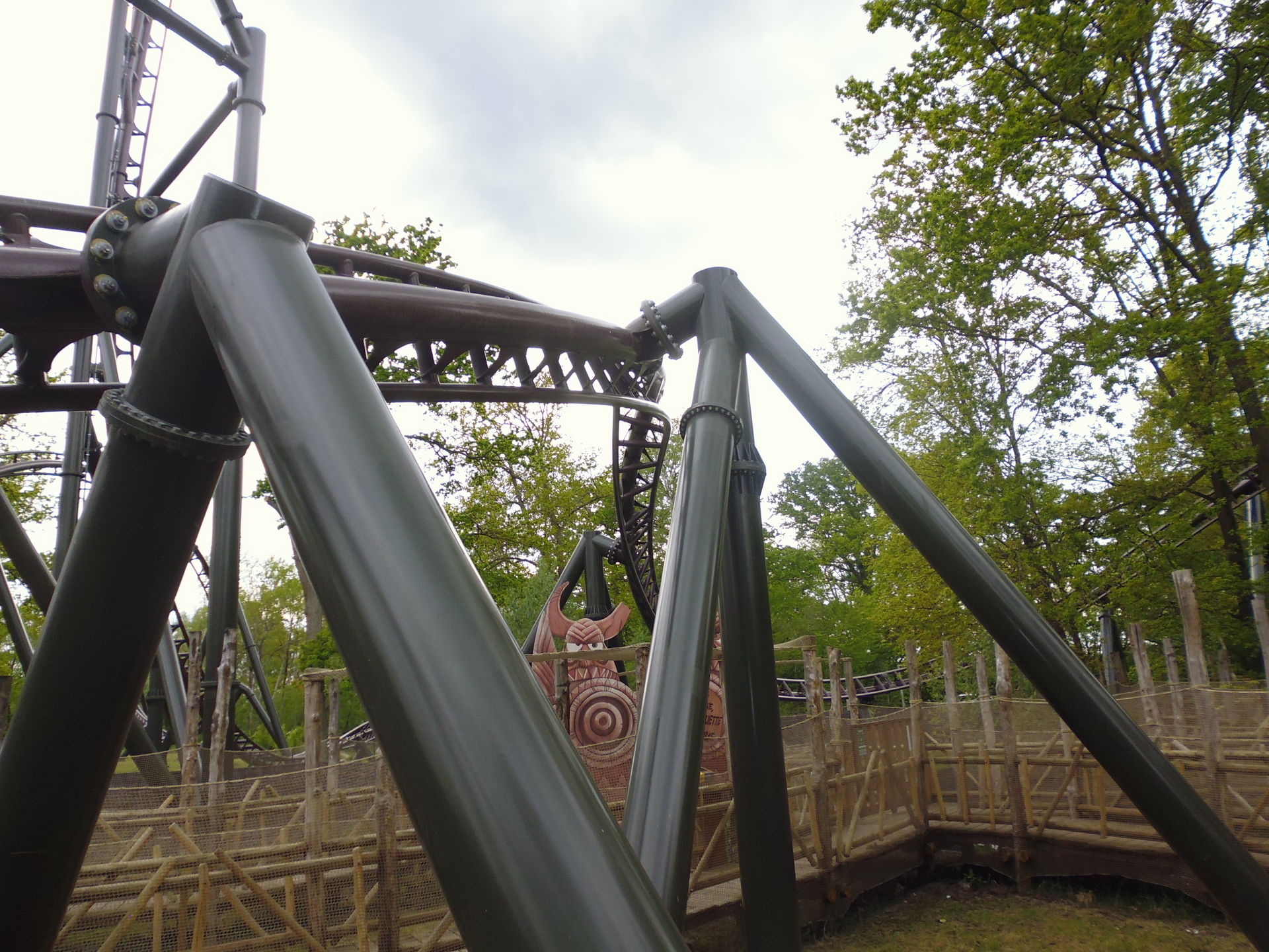 Und wie in der oben angeführten Aufnahme dokumentiert: Es sind wohl vorrangig eben diese Hydraulikbügel, die immer wieder für Aussetzer sorgen. Das hat man hier den ganzen Tag über von aussen beobachten können und auch im Parc Saint Paul wurde damals mindestens zu zwei Gelegenheiten daran gewerkelt. Angesichts einer solchen Masse an Fahrwilligen zu diesem Brückentag sind solche offenbar intrinsisch mit dem Rollmaterial einhergehenden Intermezzi schlicht pures Gift für flüssige Abfertigungen. Wie man sich da die klobigeren aber wenigstens bewährten PTCs wieder zurücksehnt. Also rein aus der Sicht eines nach so einem Katastrophenmorgen nun reichlich angefressenen zahlenden Kunden, versteht sich - rein wartungstechnisch und wirtschaftlich wird sich der Park dabei wohl was gedacht haben.