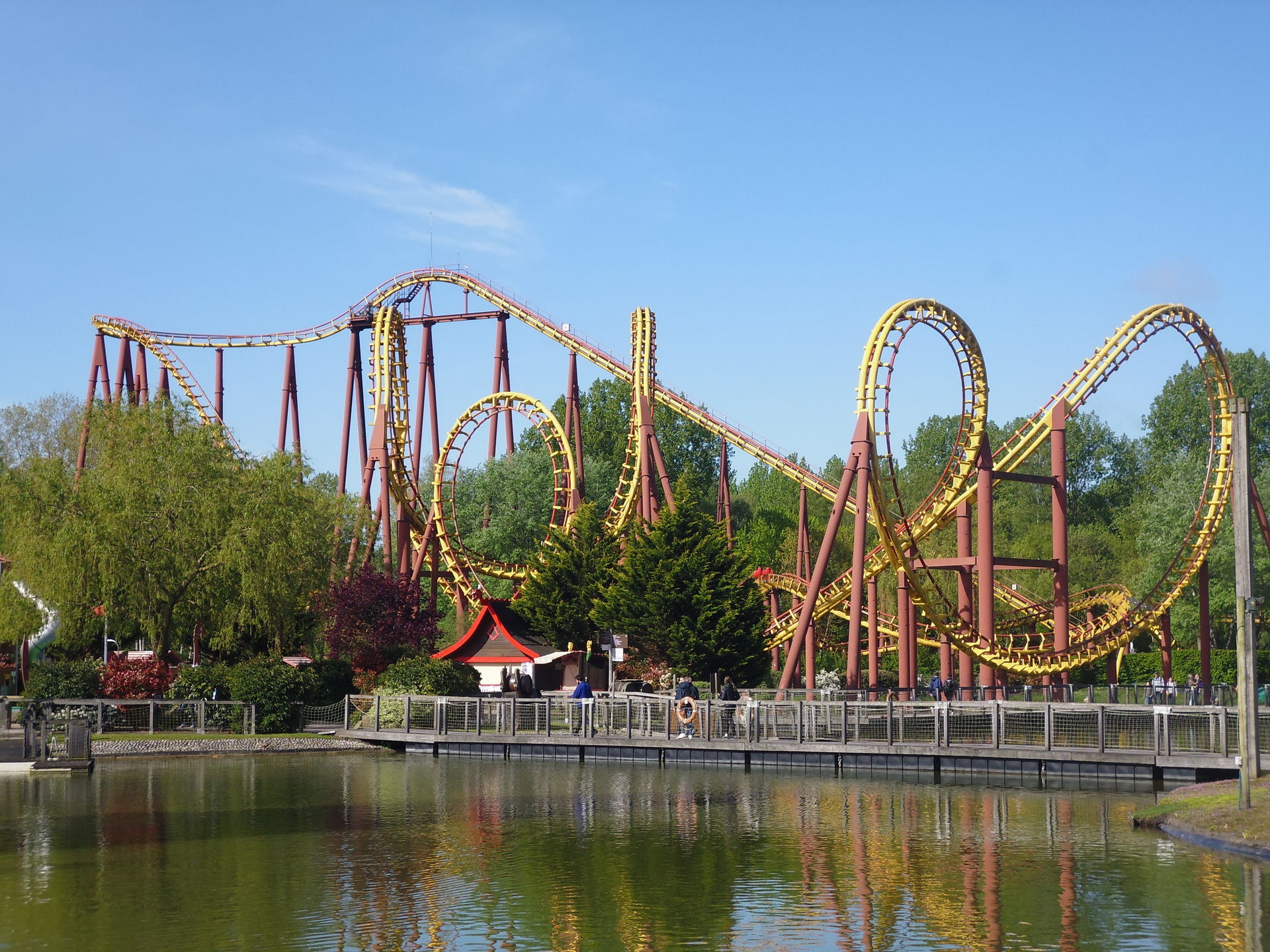 gänzlich schmerzfrei wird eine Fahrt hier drauf nie sein. Und ja, man muss aktiv mit dem Kopf mitwippen und ganz allgemein mitmachen und sich wappnen. Aber gleichwohl ist das schlussendliche Fahrerlebnis für mich als die Schulterbügel immer noch exakt Ausfüllenden auch beim Drittbesuch nach wie vor total spassig und bei weitem nicht so schlimm wie die generelle Urteils-Übereinkunft zu Goudurix im Coaster-Fandom halt so lautet. Das grandiose Layout und das Setting überm Wasser tun ihr Übriges. Es bleibt also dabei, dass ich hier auch in Zukunft noch gerne einsteigen werde, wenn man es mir denn möglich machen sollte.