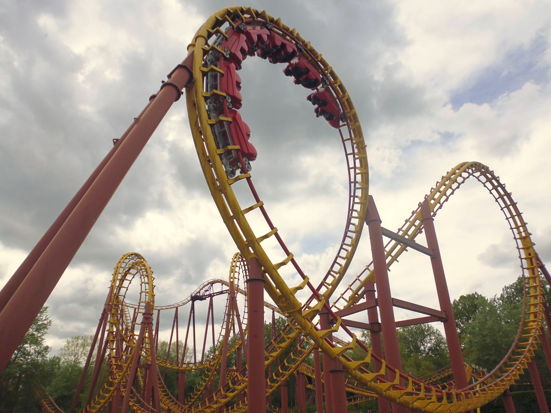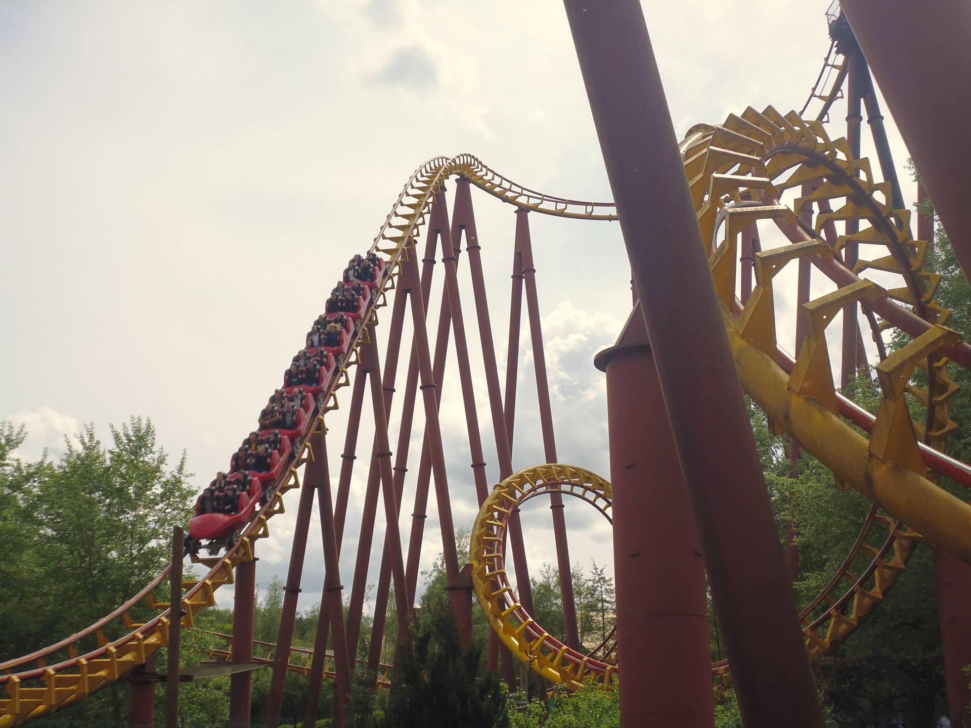Immelmann, einige fabelhaft druckreiche Kurvenmanöver... Hier stimmt einfach alles. Ich hoffe nur, das bäumige Bahneli irgendwann mal wieder mehrfach durch einen offenen Single-Rider-Eingang beehren zu dürfen, das hat bei dieser Visite doch merklich gefehlt. Selbst wenn das denn bedeutete, auf die nun kennen gelernte Normalo-Schlange zu verzichten und den Park dann wohl allgemein dergestalt leerer anzutreffen, dass bloss wieder ein Zug auf Goudurix unterwegs ist. Me cha halt nöd de Foifer und s Weggli haa, wie es hierzulande eben so schön heisst.